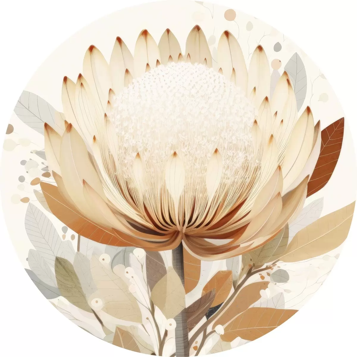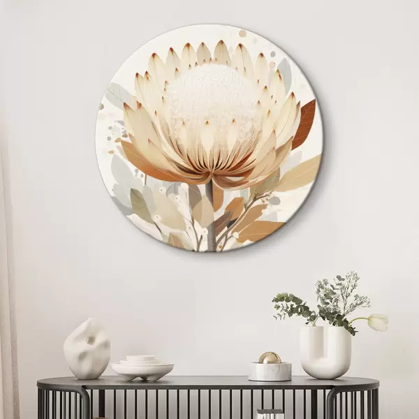Cuadros redondos Flor en una delicada paleta de color beige, abstracción floral r40818