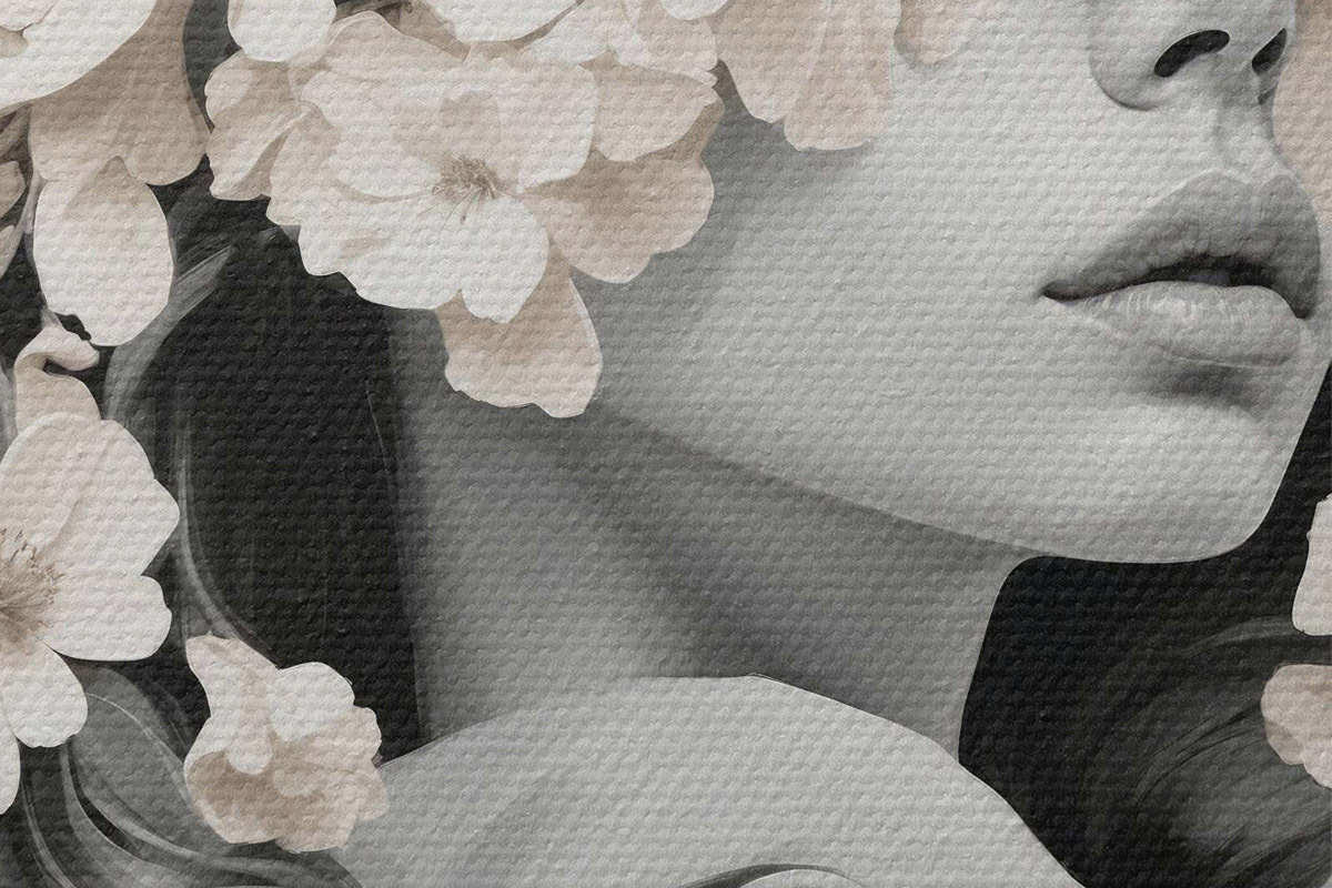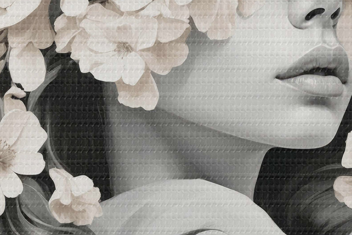 Foto Chica con flores en la cara en colores blanco y negro Nr r40849