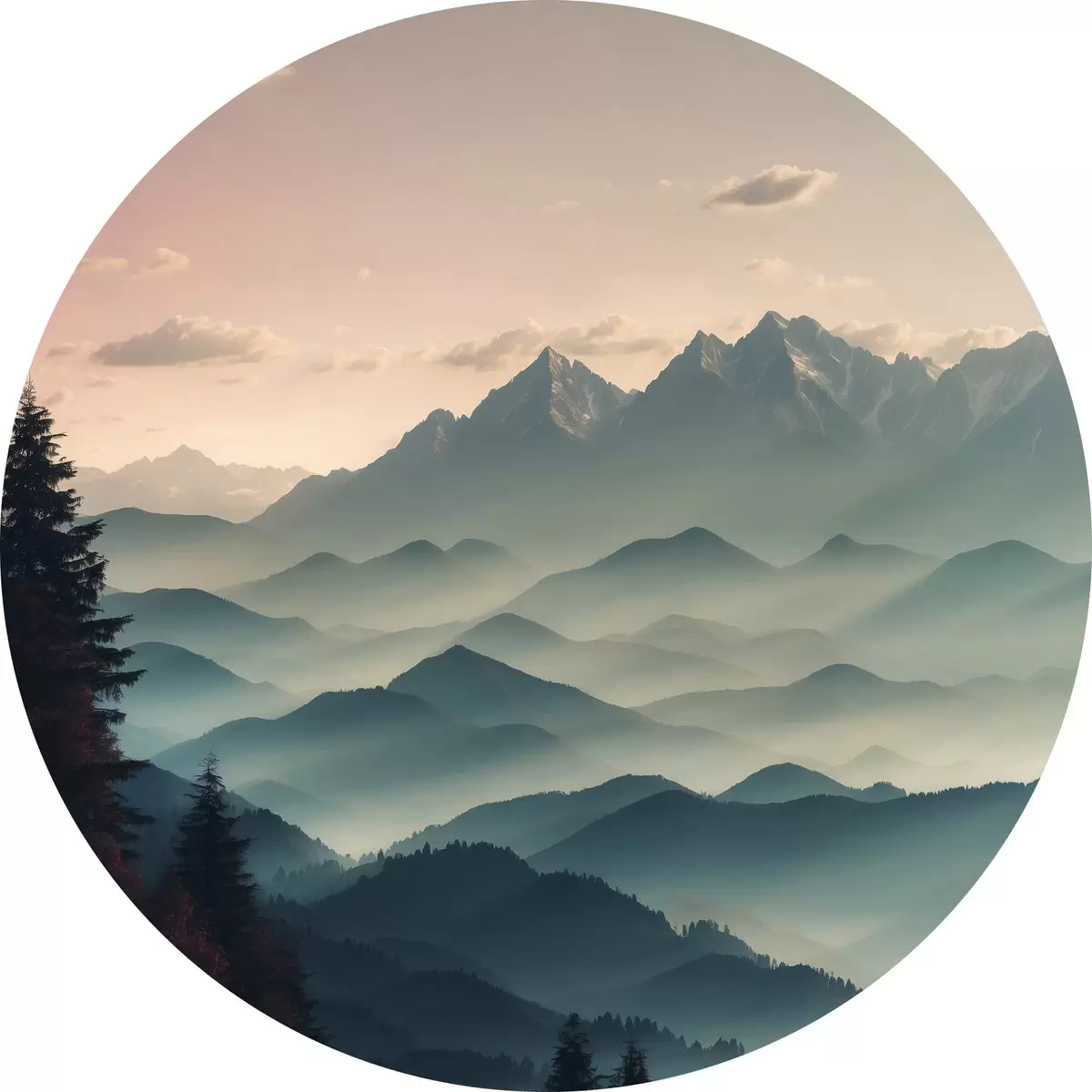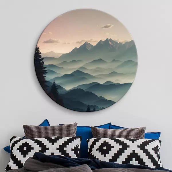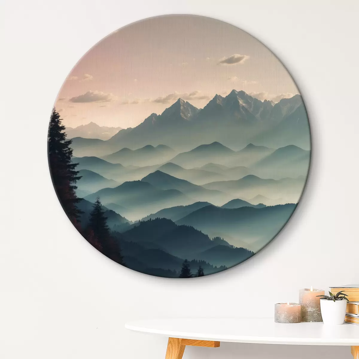 Cuadros redondos Vista de las montañas entre la niebla r40851