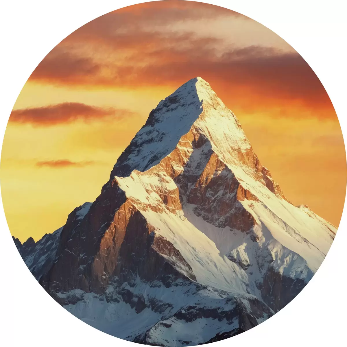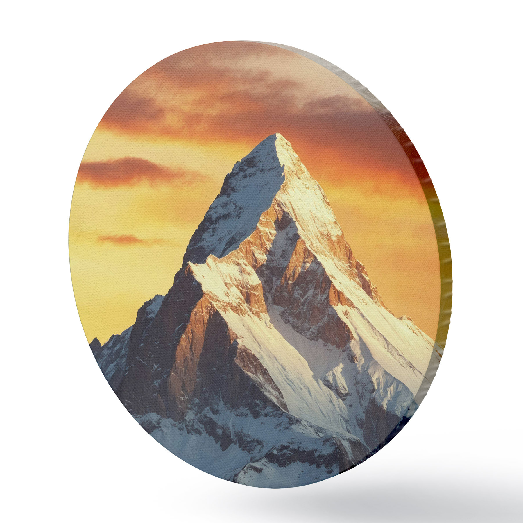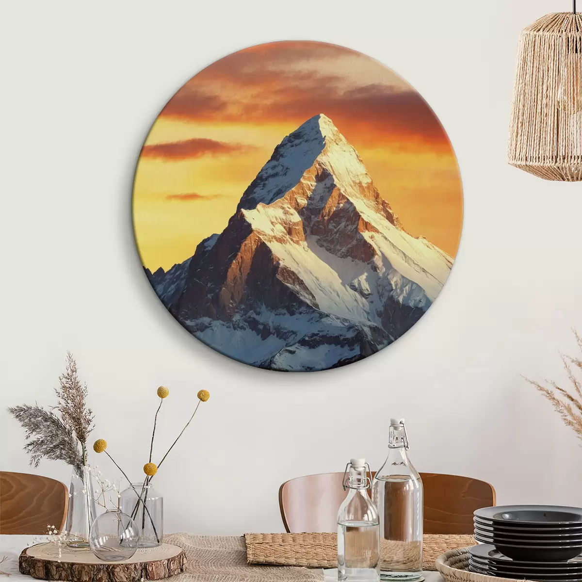 Cuadros redondos Montaña nevada y cielo anaranjado r40852