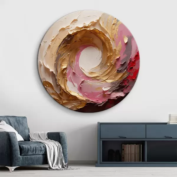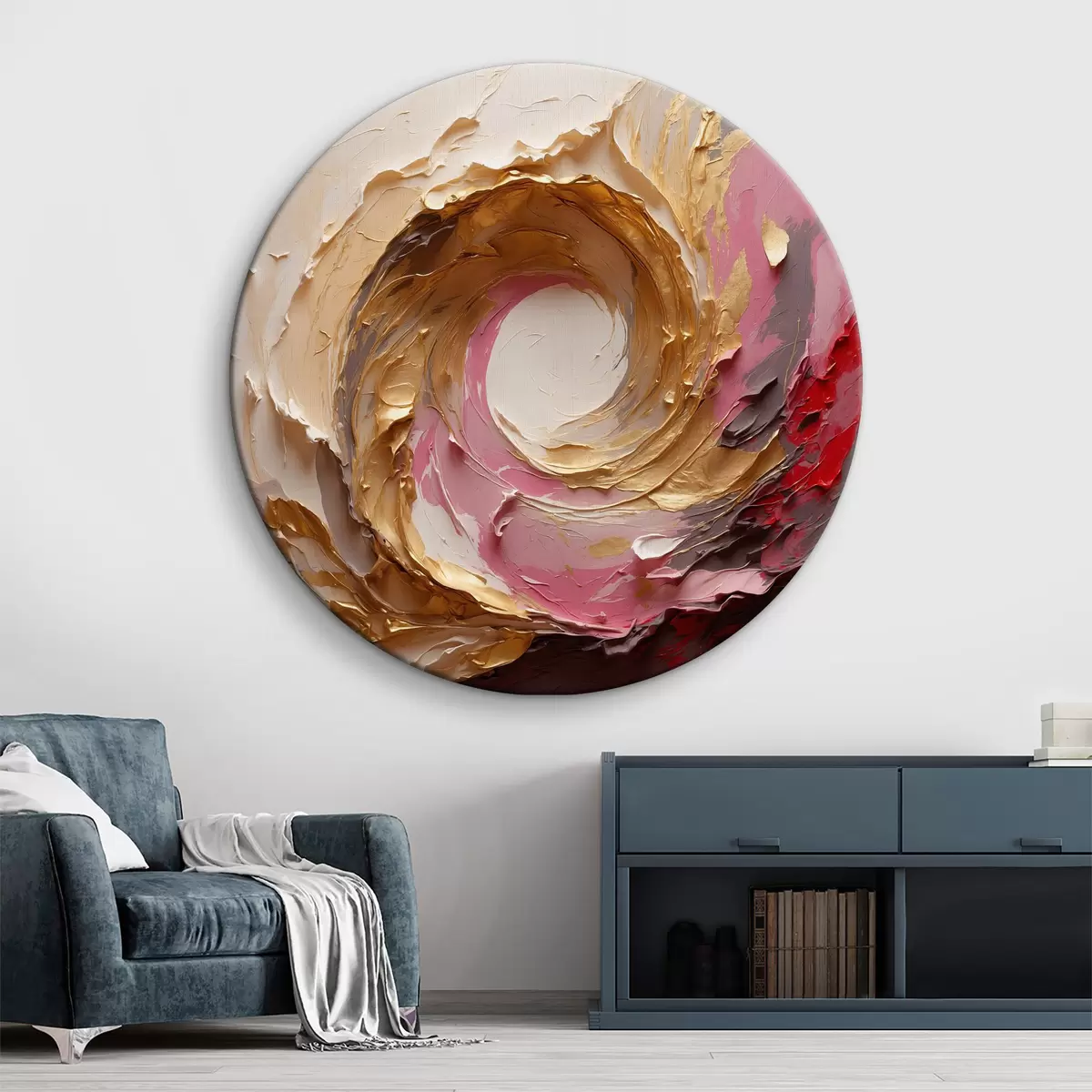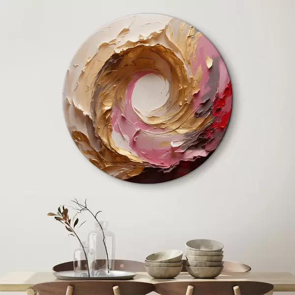 Cuadros redondos Pintura al óleo abstracta con remolinos rosas y amarillos r40863