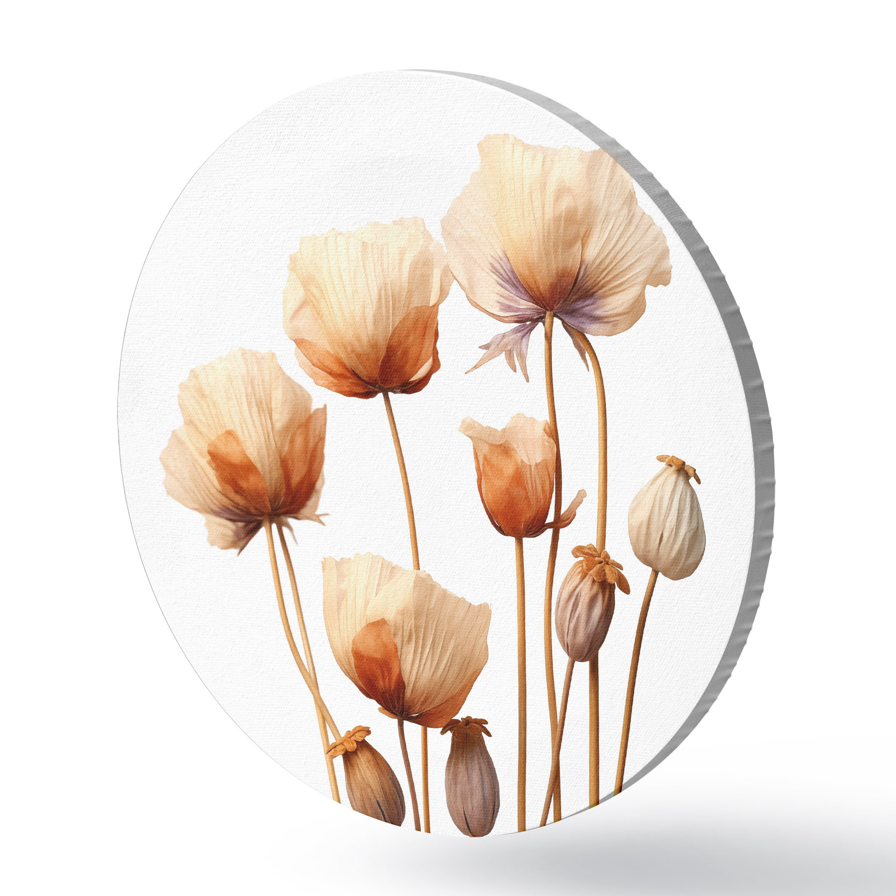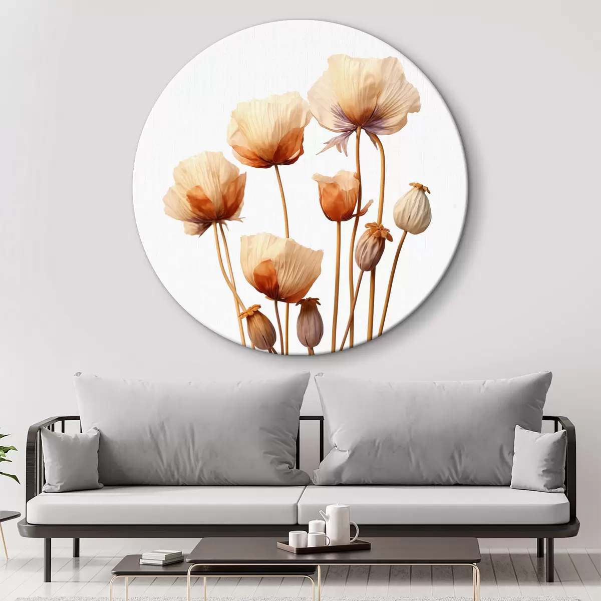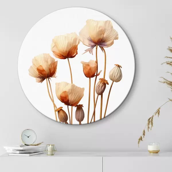 Cuadros redondos Flores de amapola en tallos secos minimalismo r40883