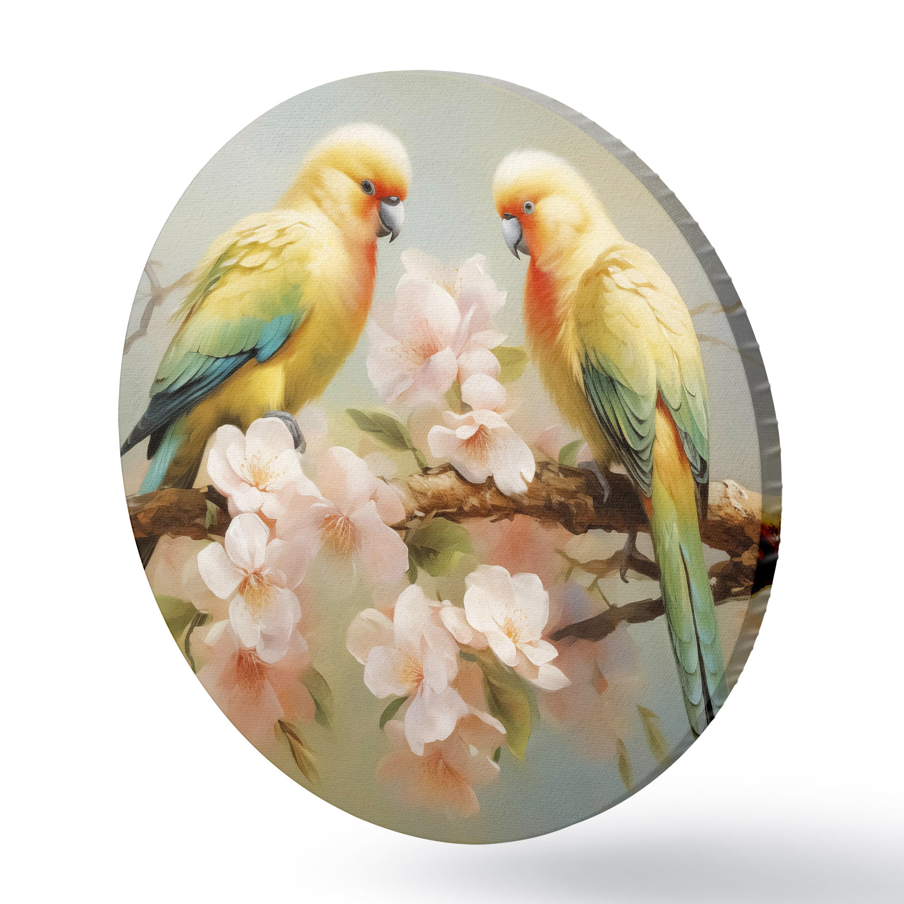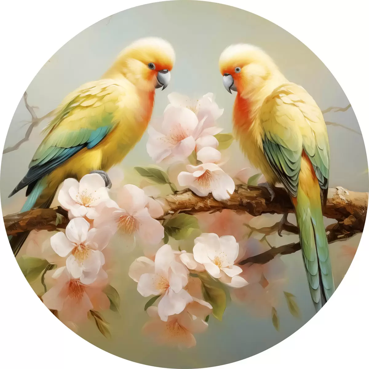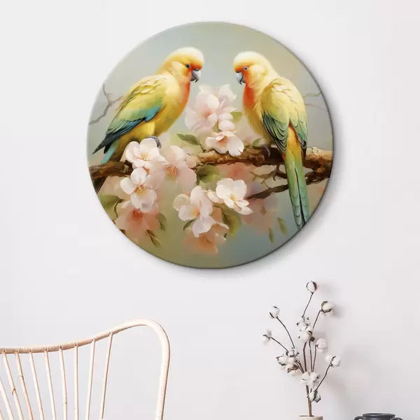 Cuadros redondos Loros sentados en una rama florida acuarela r40892
