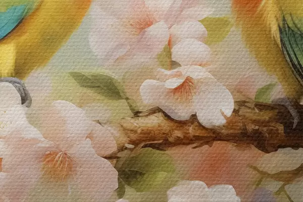 Foto Loros sentados en una rama florida acuarela Nr r40892