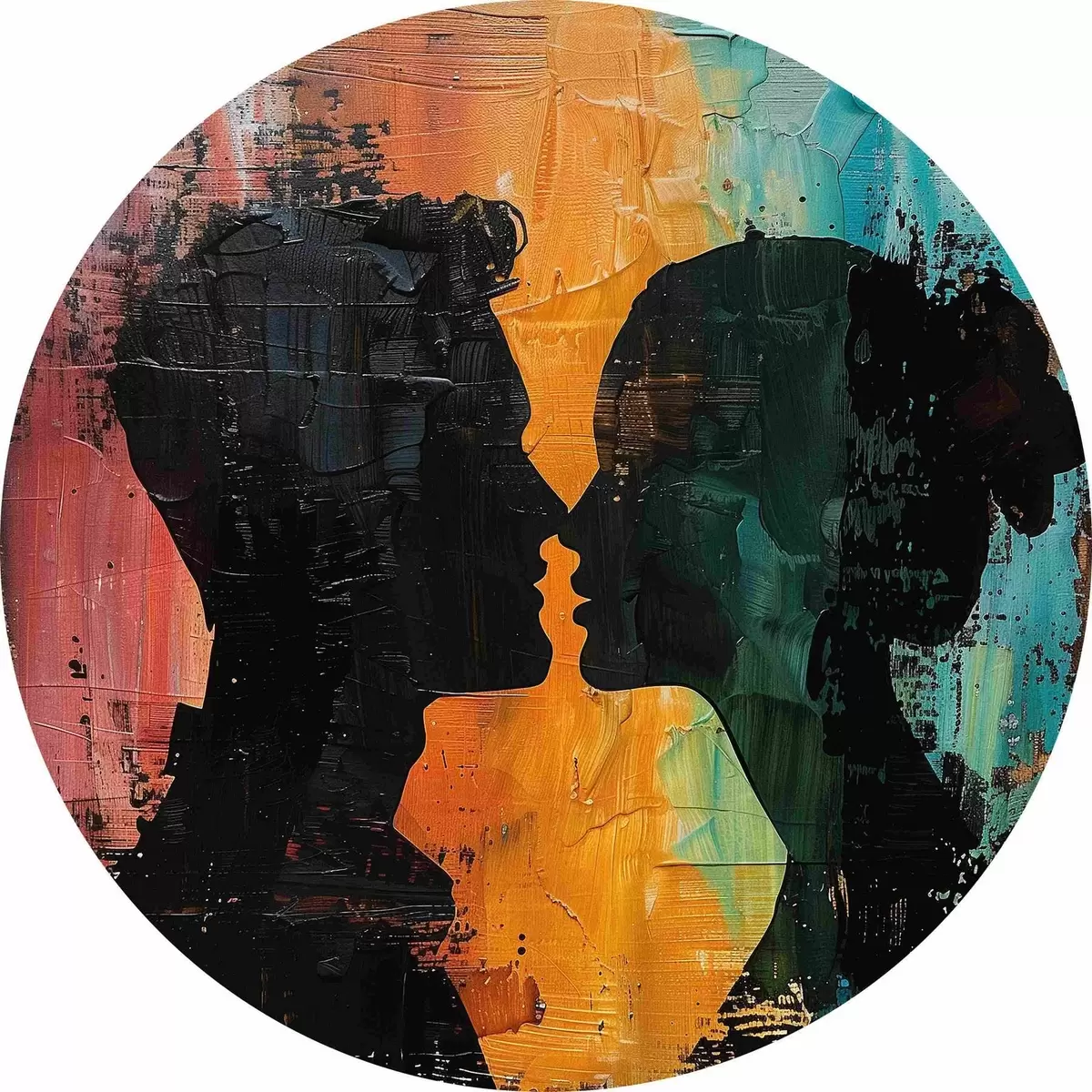 Cuadros redondos Un óleo que representa la silueta de una pareja r40893