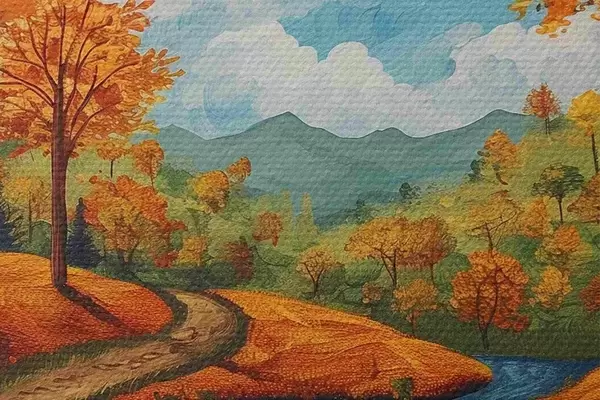 Cuadros redondos Paisaje otoñal en acuarela r40900