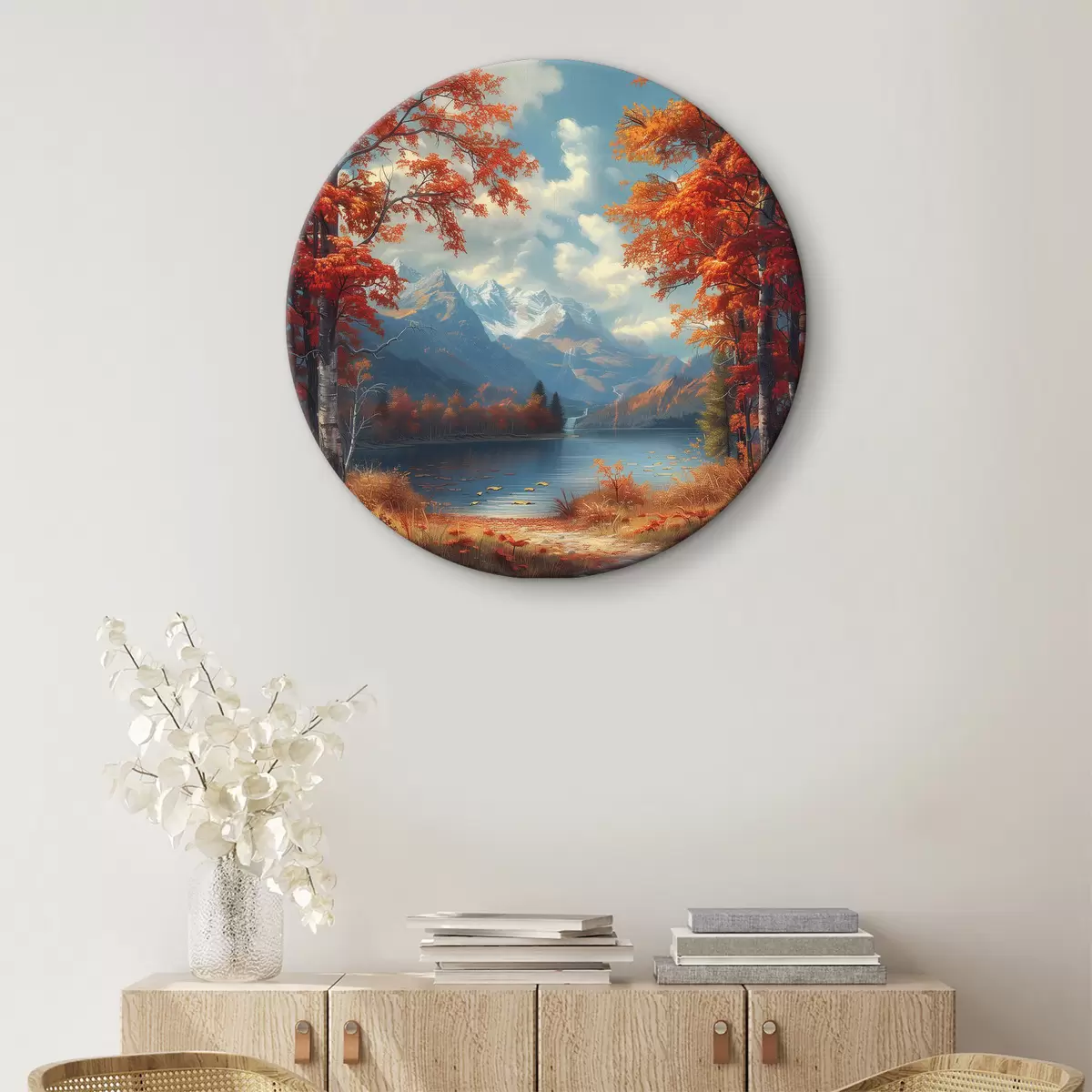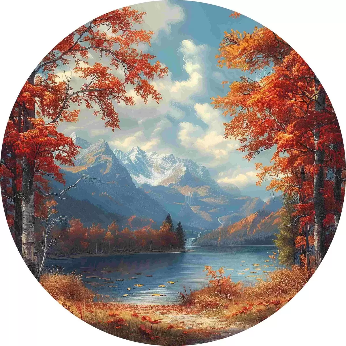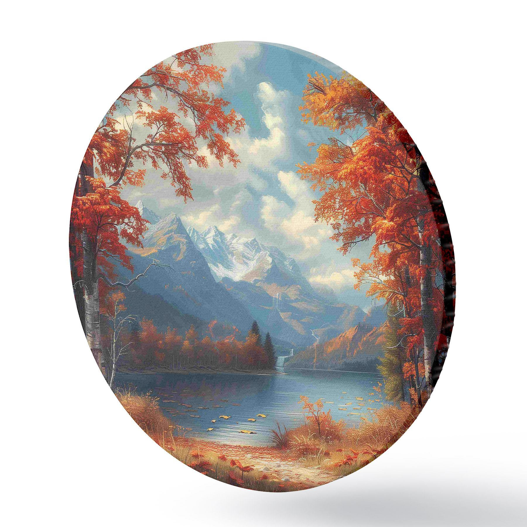 Cuadros redondos Paisaje otoñal sobre el fondo de montañas cerca del estanque r40903