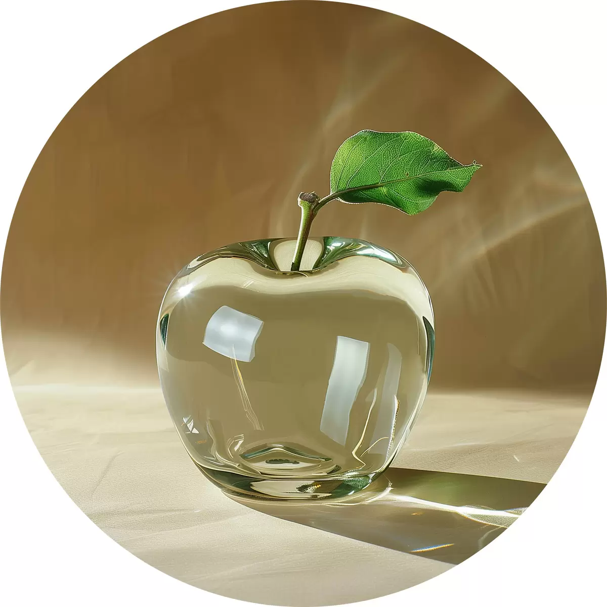 Cuadros redondos Manzana de cristal transparente sobre fondo claro r40913