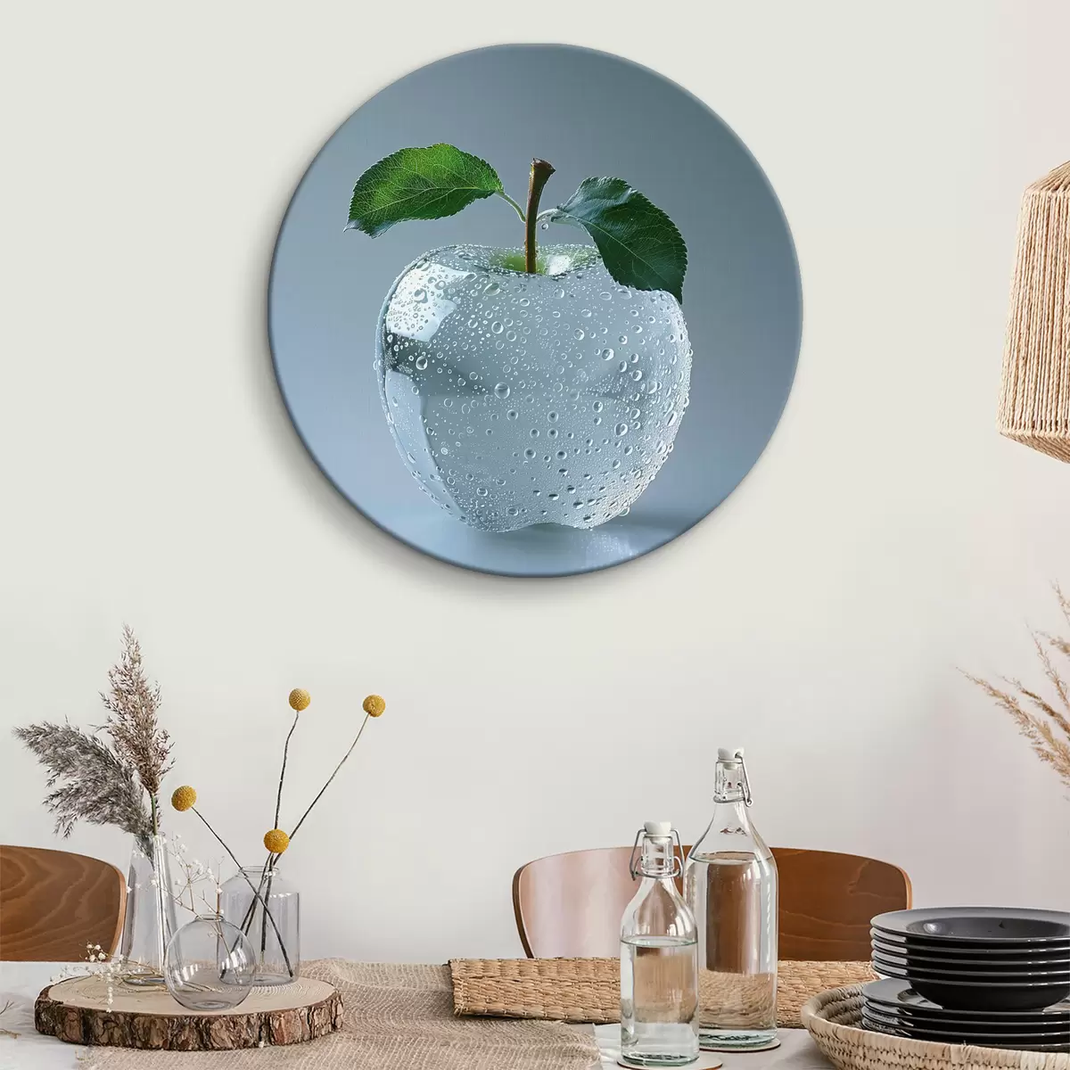 Cuadros redondos Manzana de cristal en gotas de rocío r40914