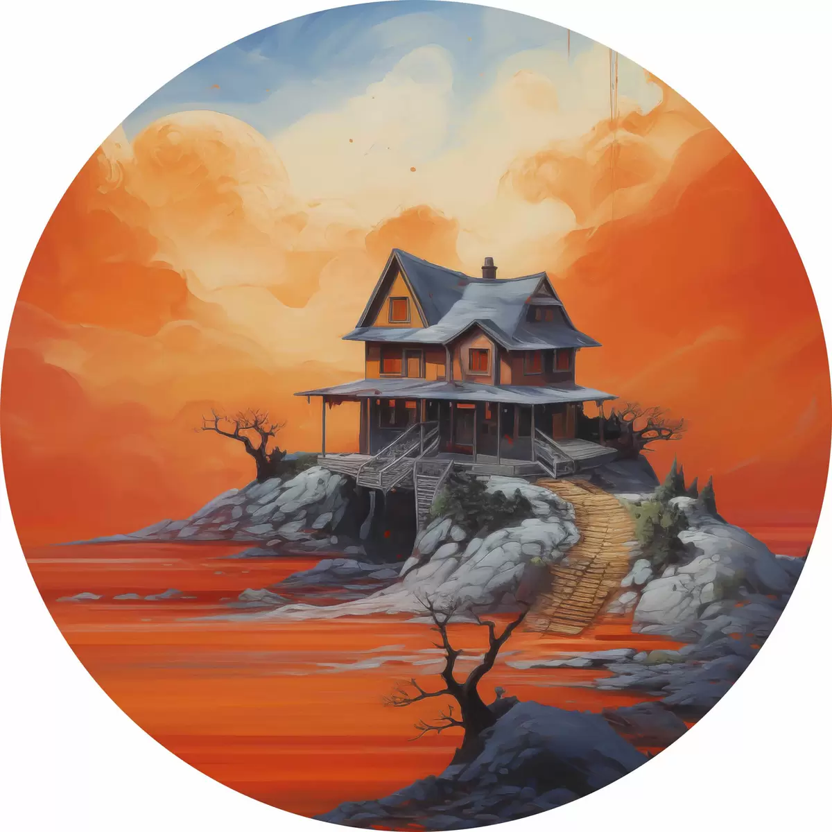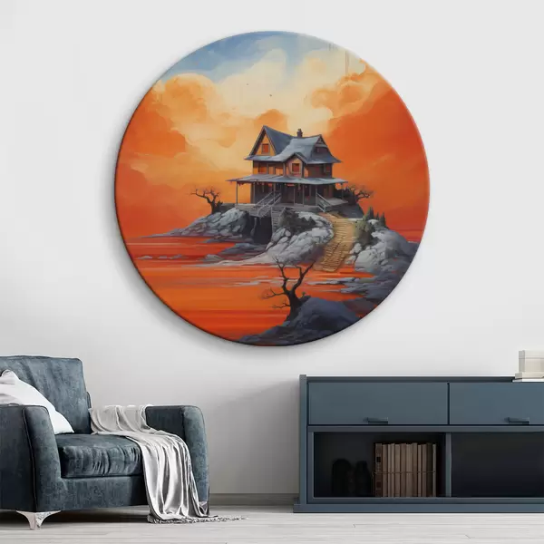 Cuadros redondos Casa bajo la luna, arte futurista, líquido, waercolor r40945