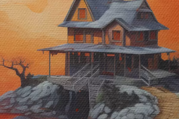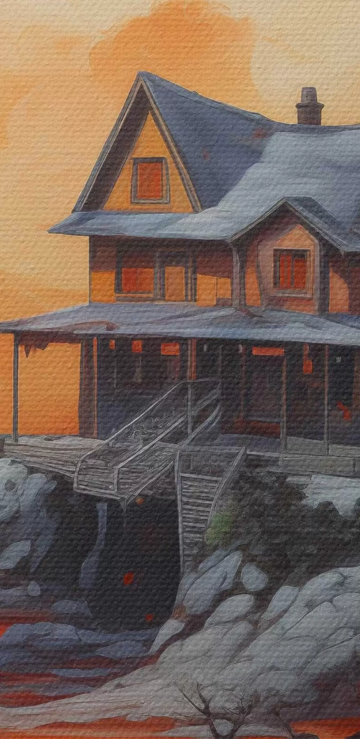 Foto Casa bajo la luna, arte futurista, líquido, waercolor Nr r40945