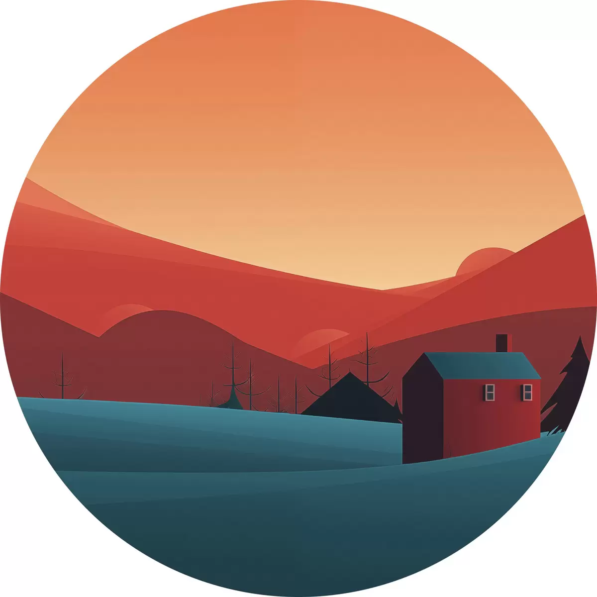 Foto Paisaje minimalista con casa y bosque Nr r40952