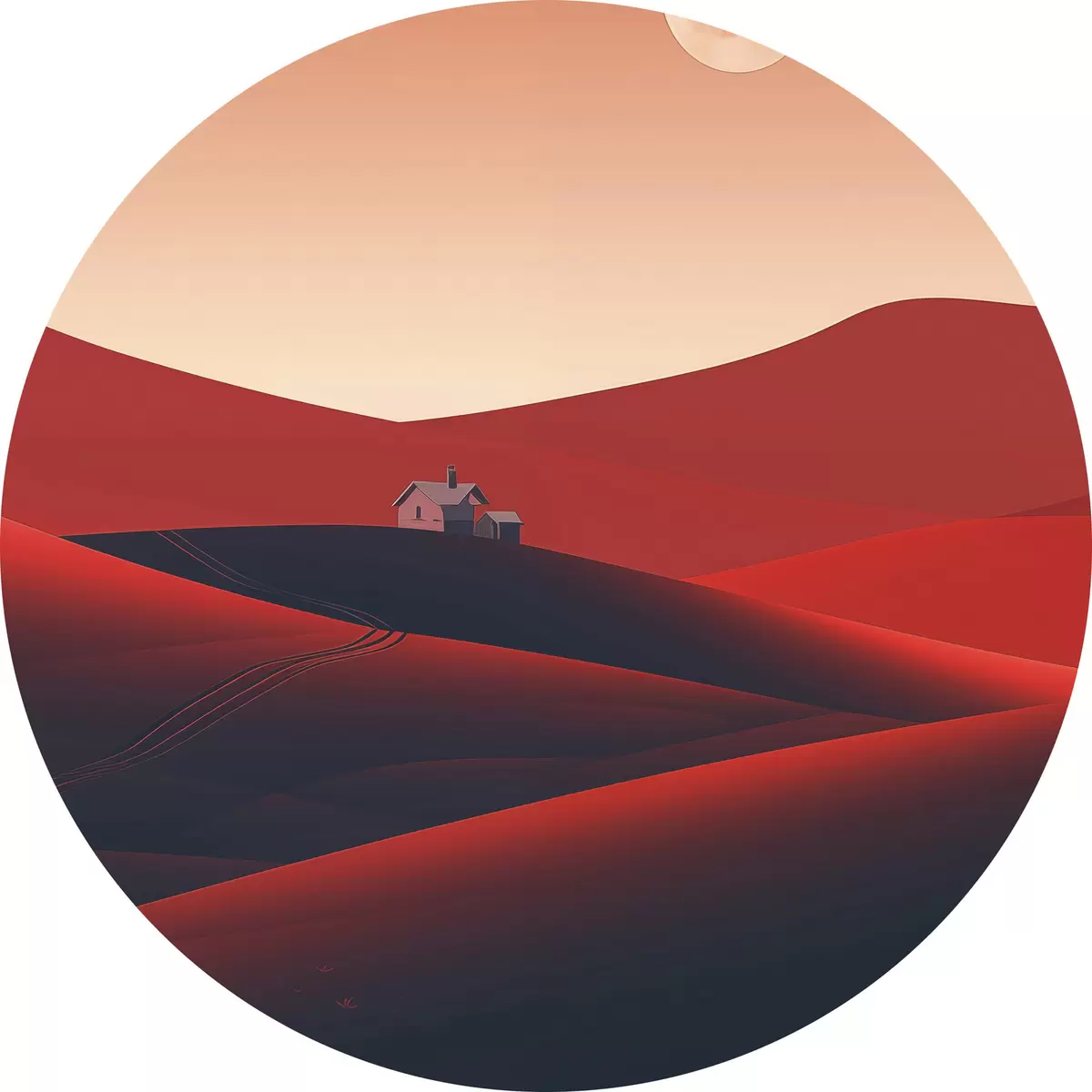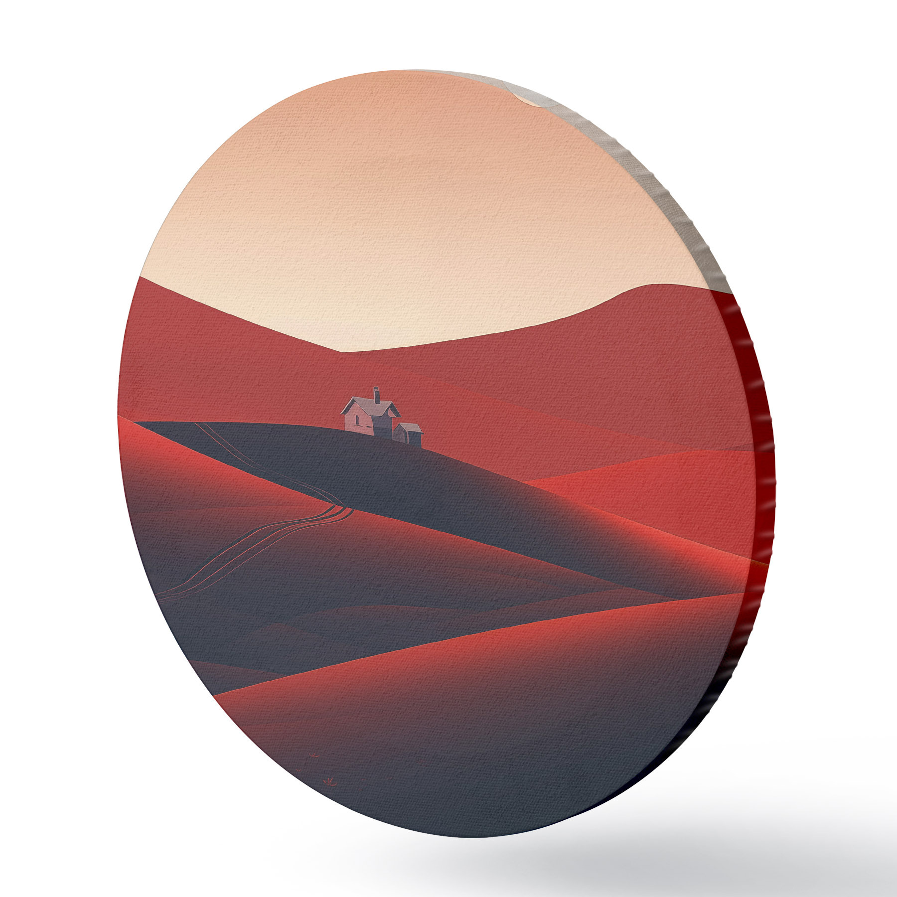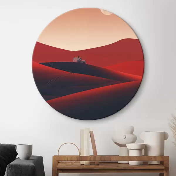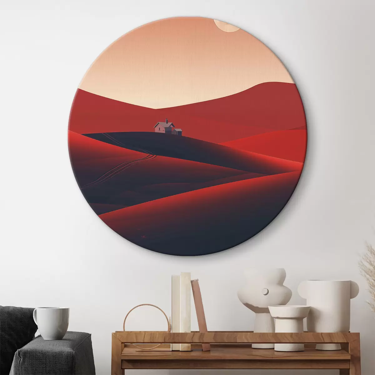 Cuadros redondos Paisaje minimalista desértico con casa y luna r40953