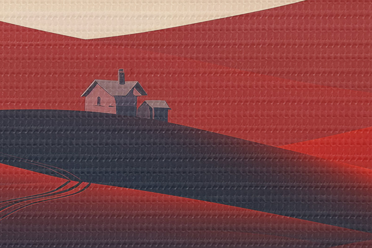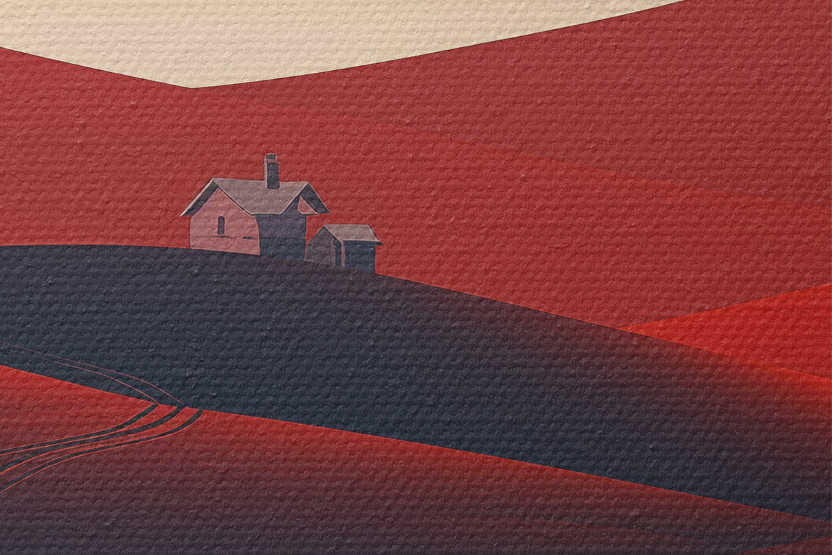 Foto Paisaje minimalista desértico con casa y luna Nr r40953