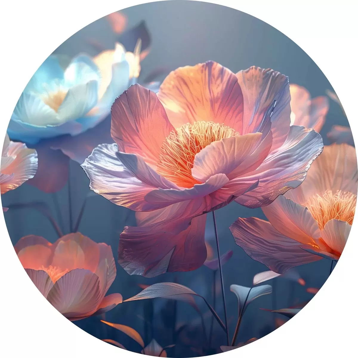 Cuadros redondos Amapolas mágicas con un tinte azul r40958