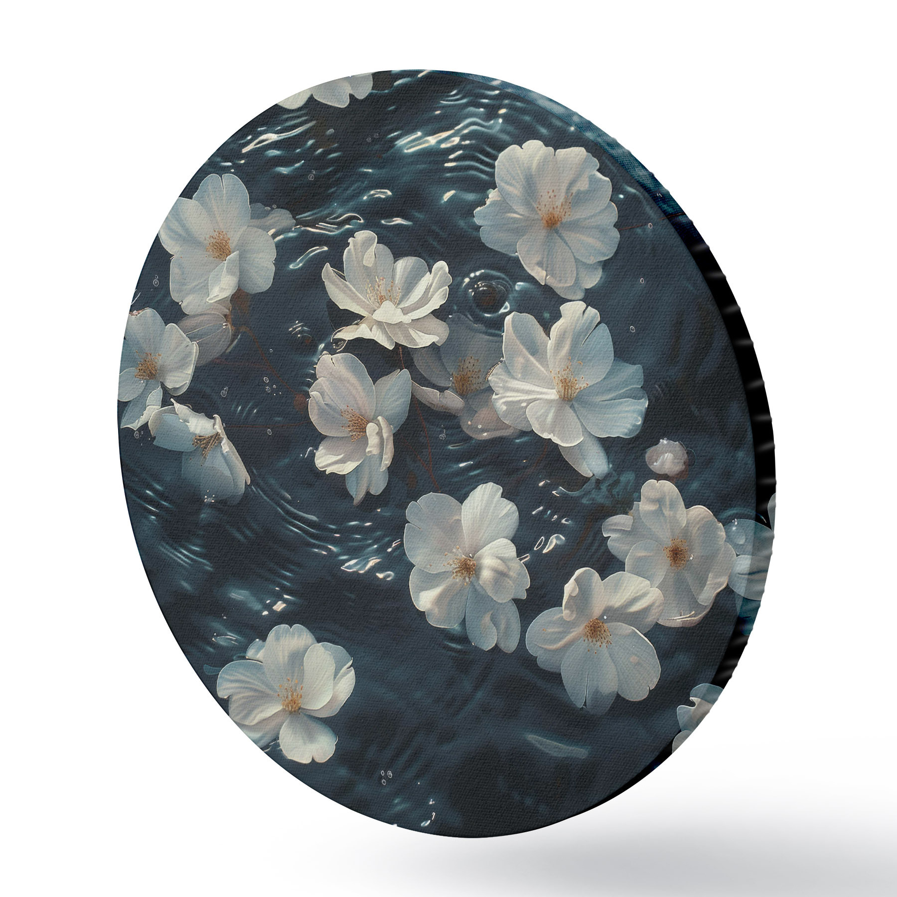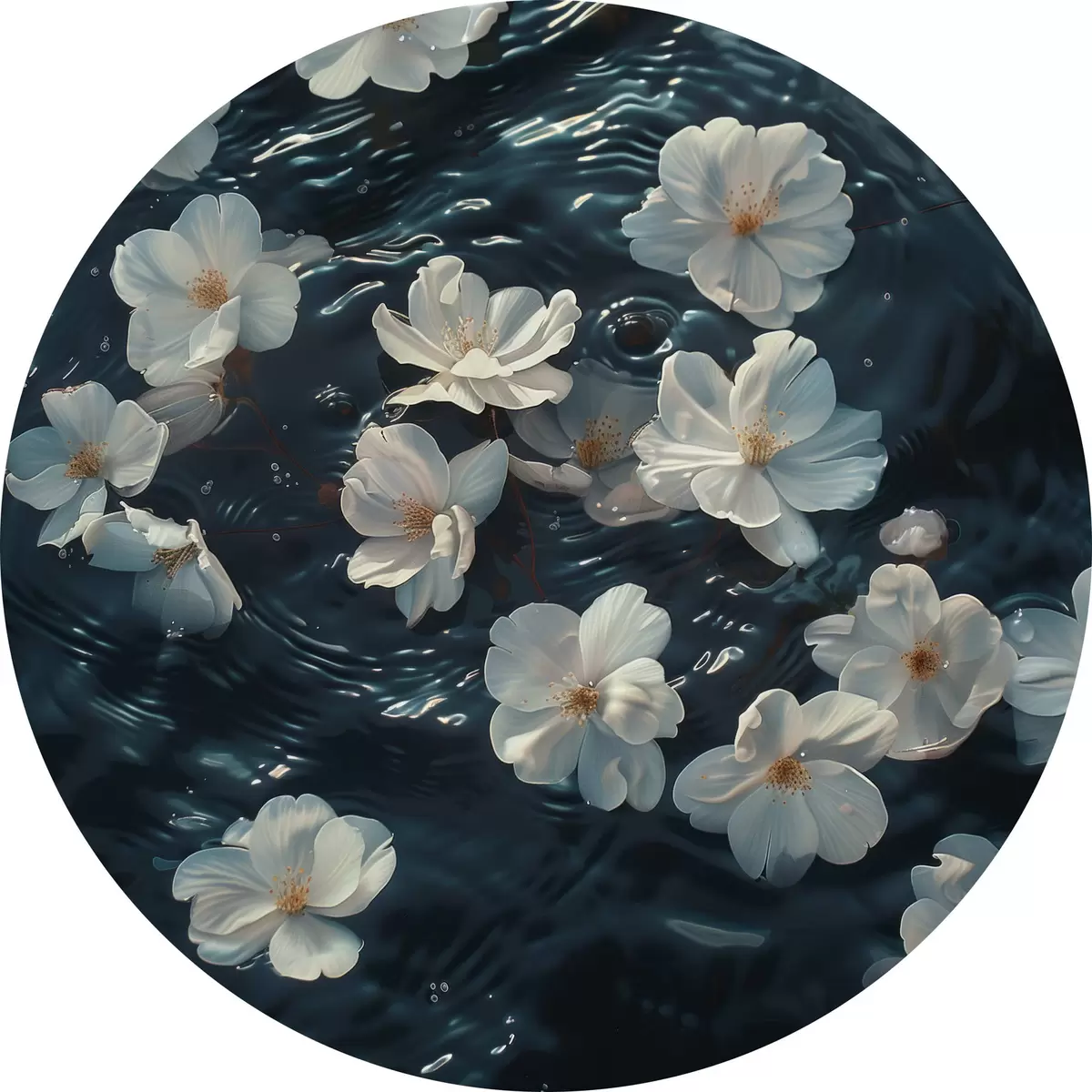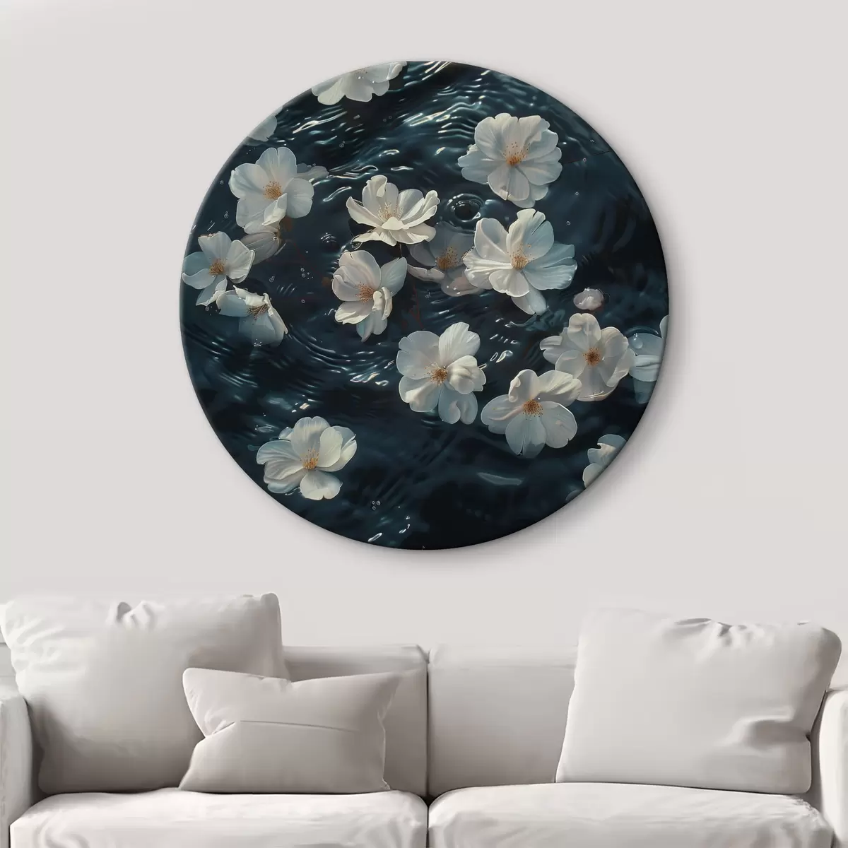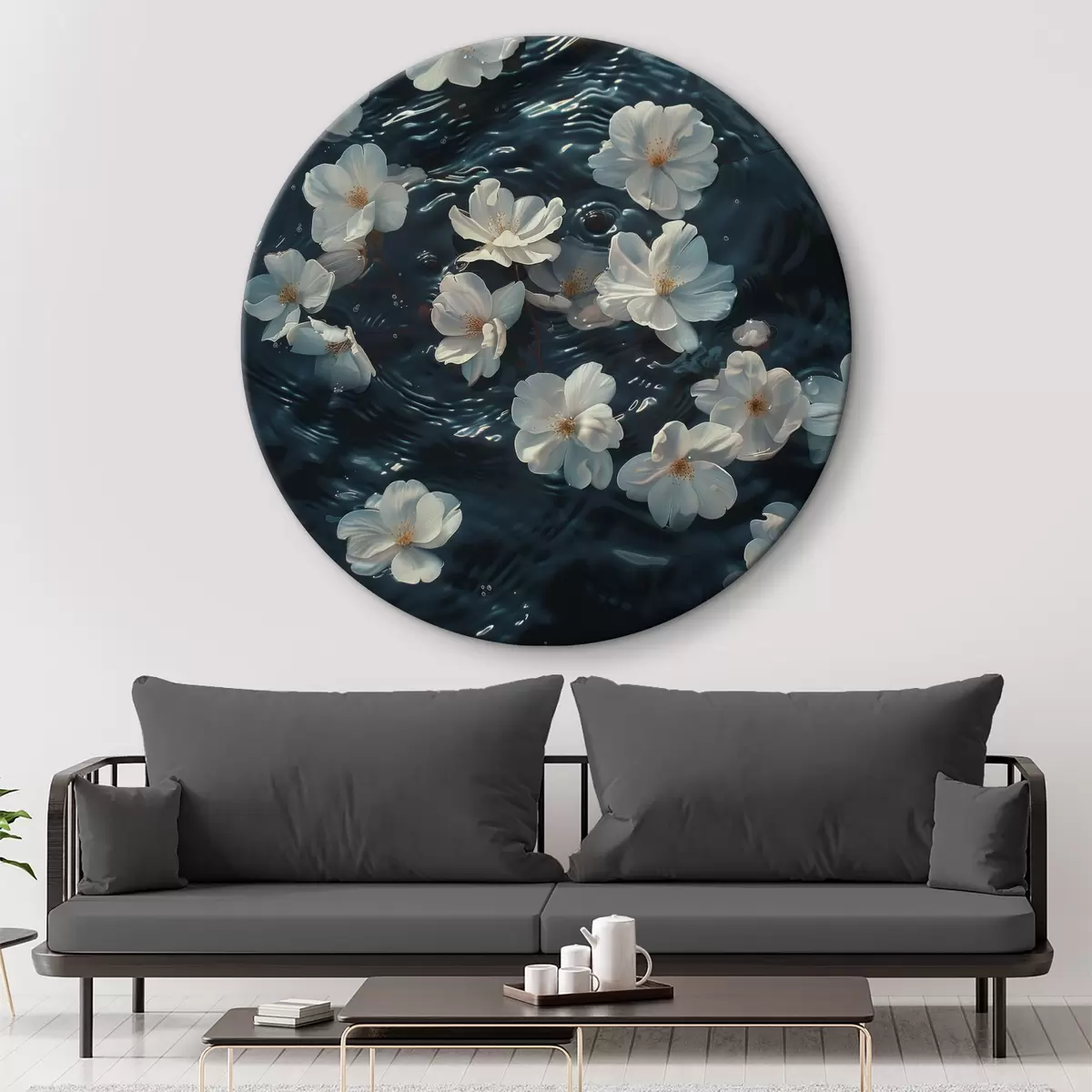 Cuadros redondos Flores blancas de jazmín flotando en el agua r40960