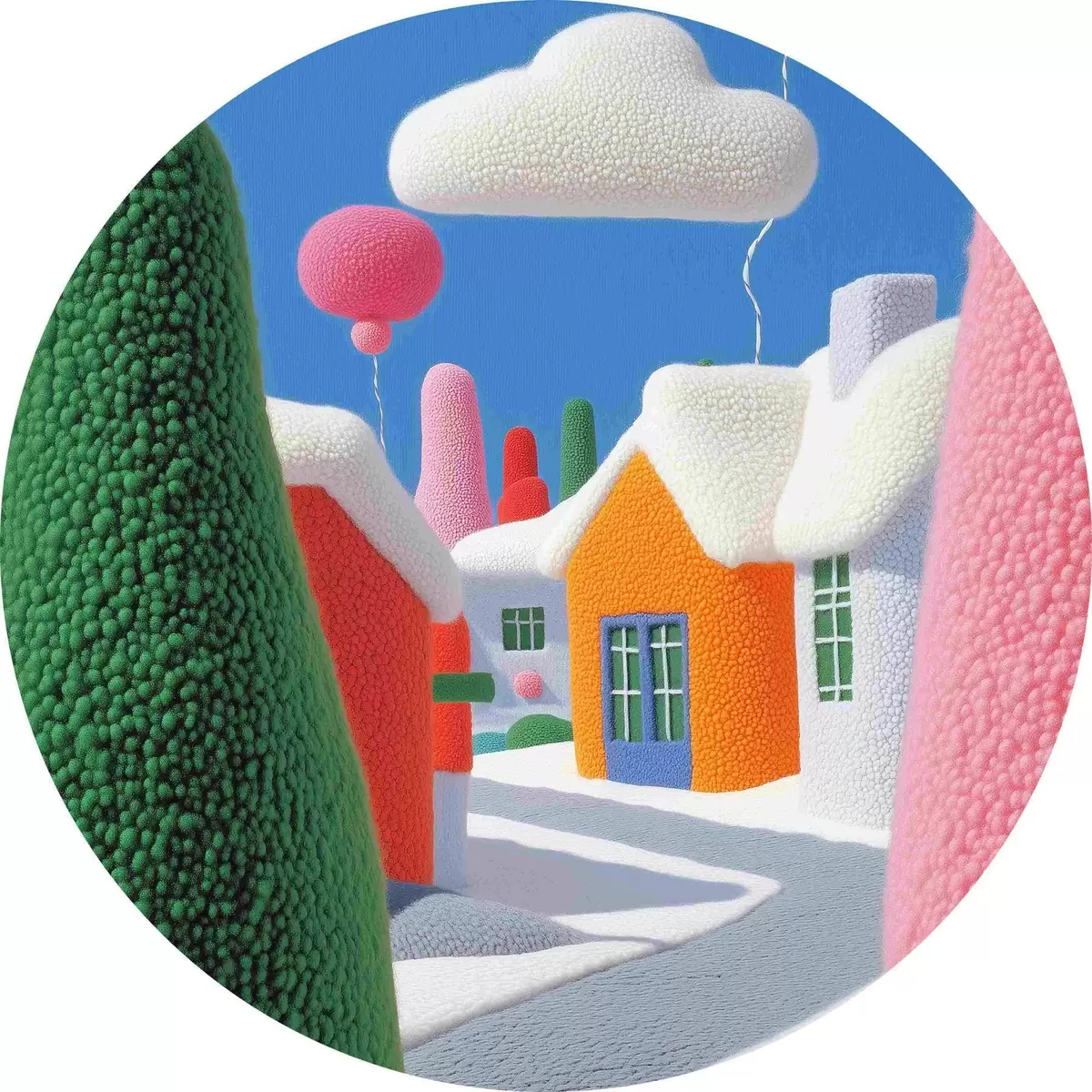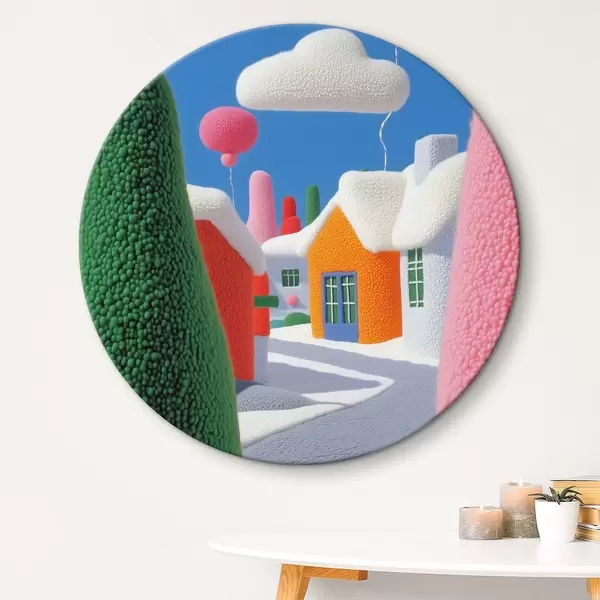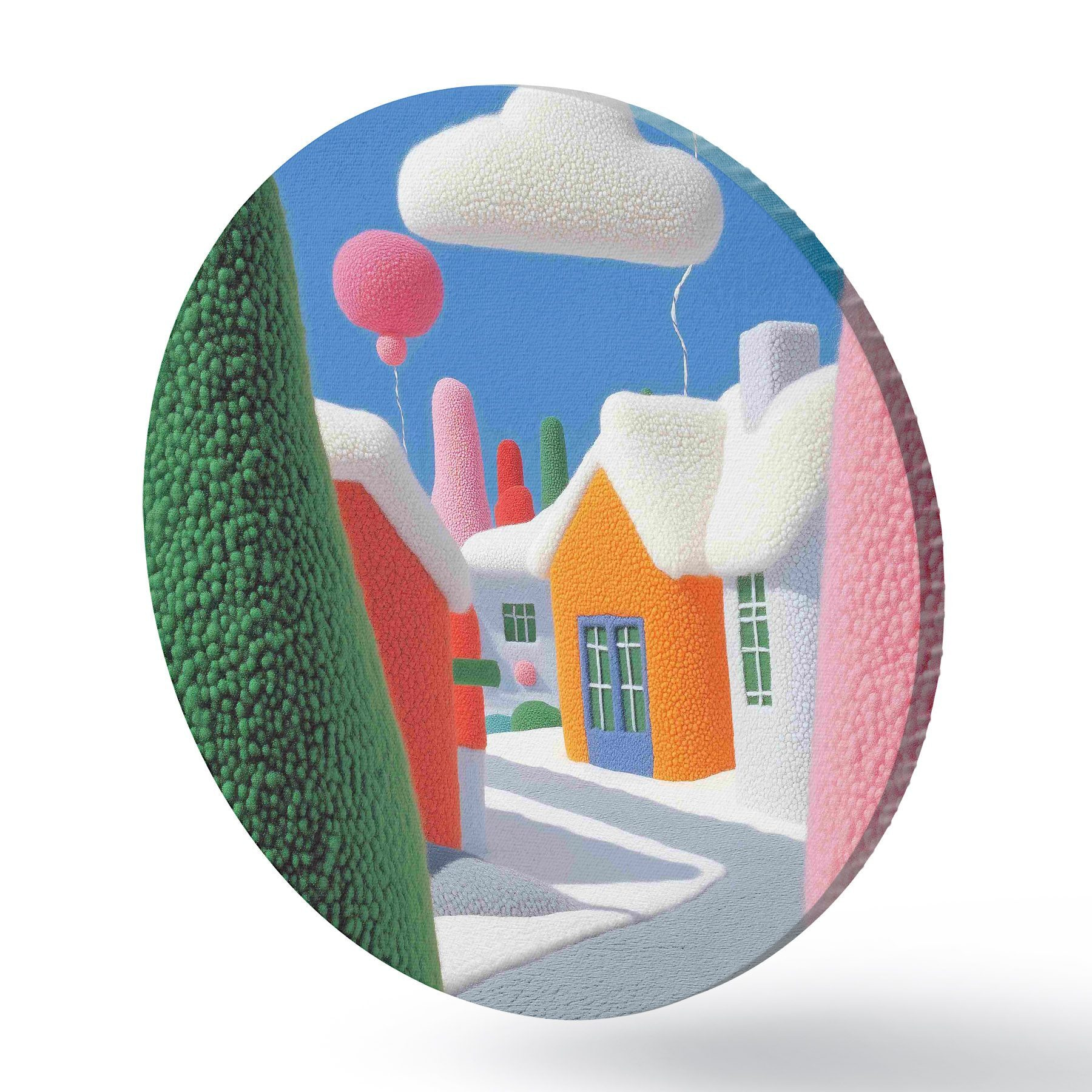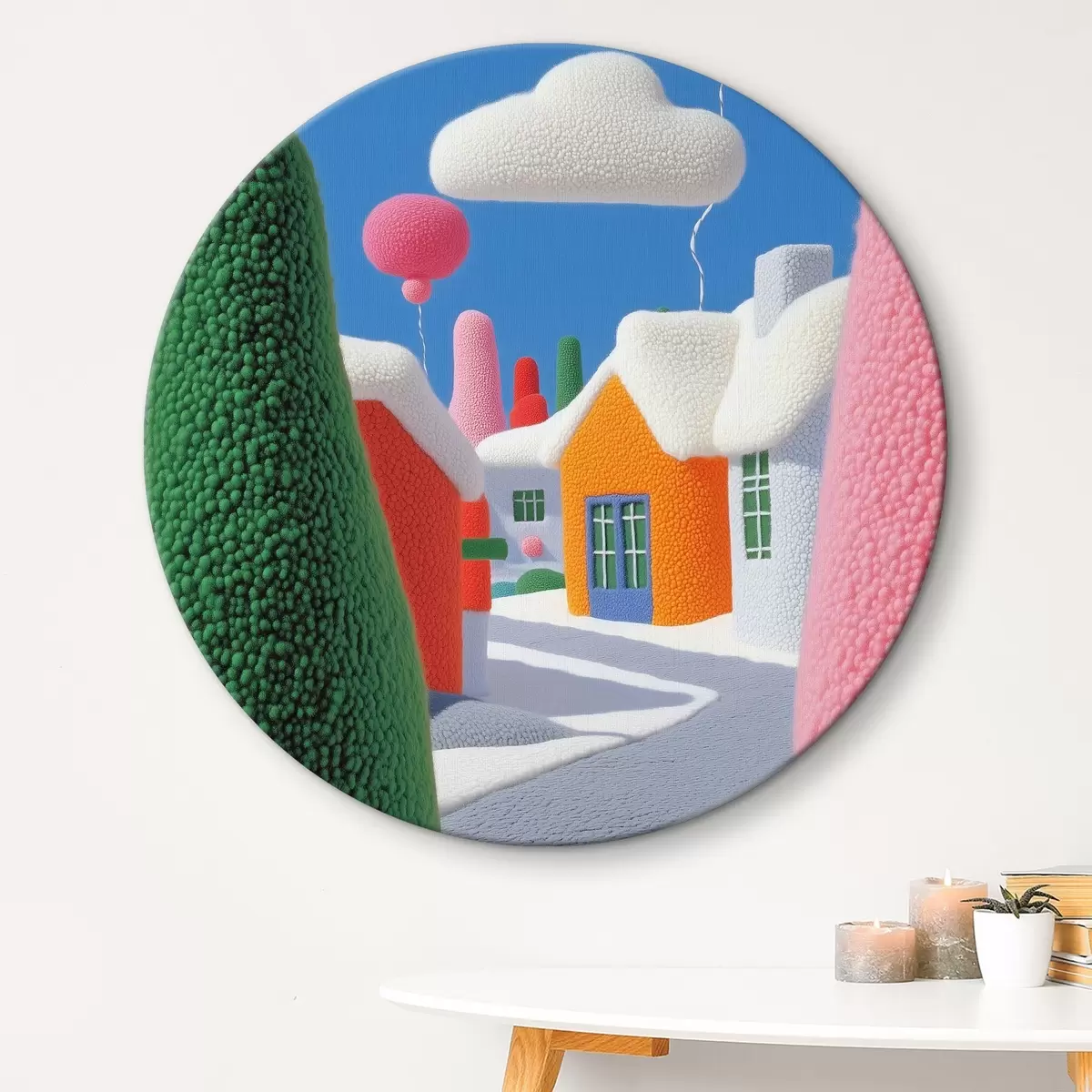 Cuadros redondos Calle con nubes y globos de fieltro r40970