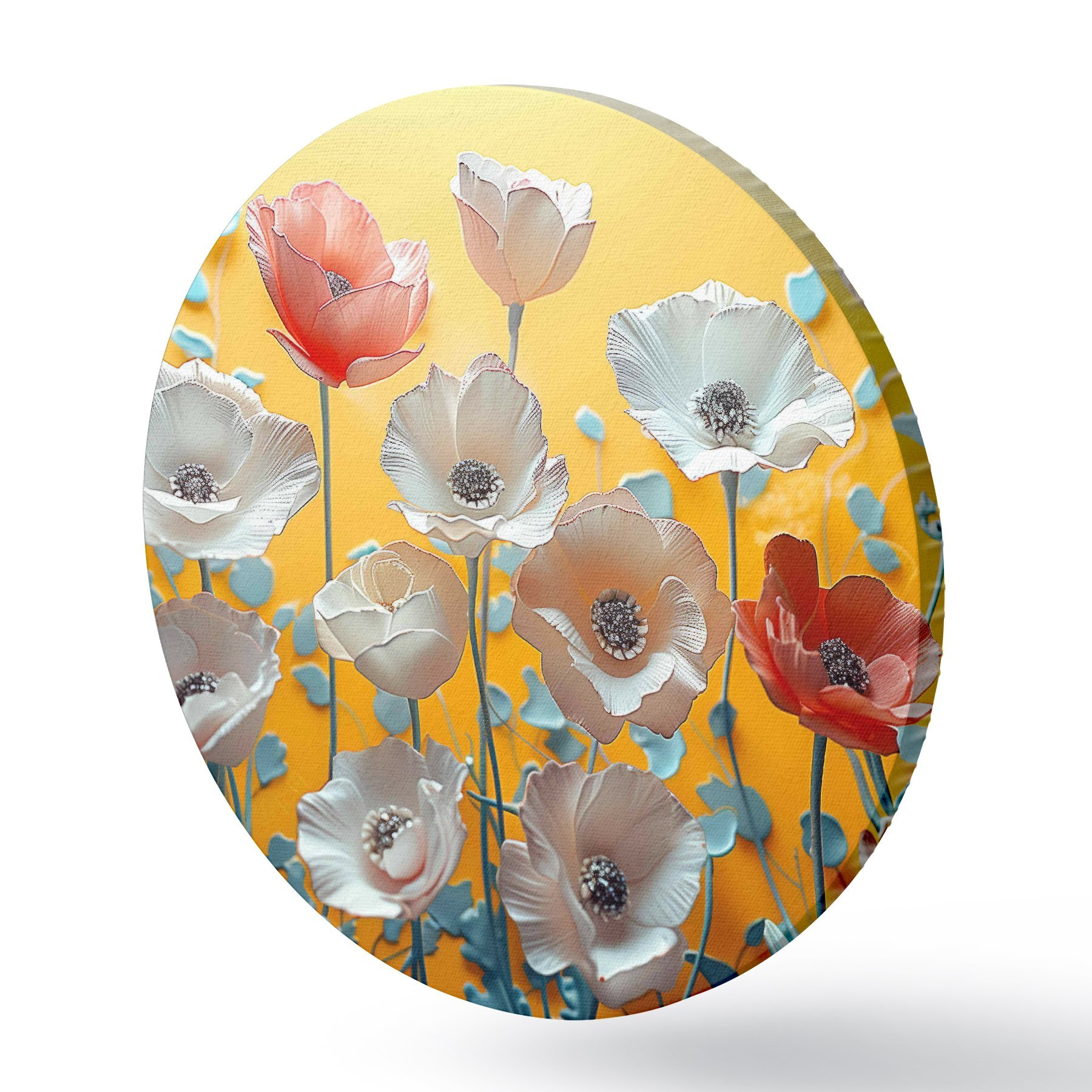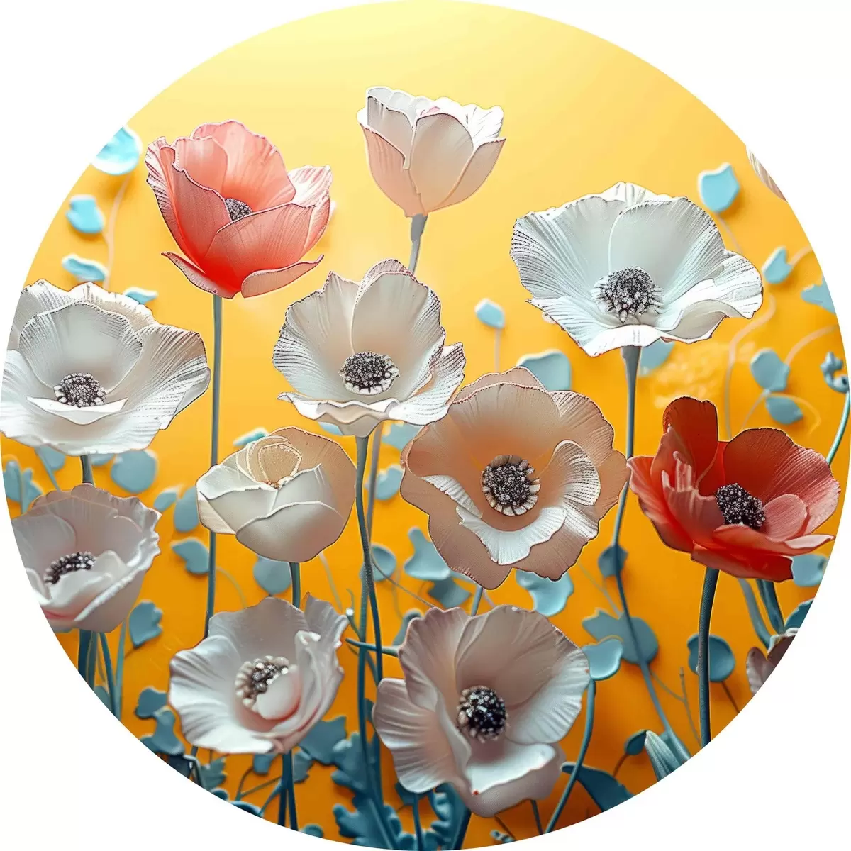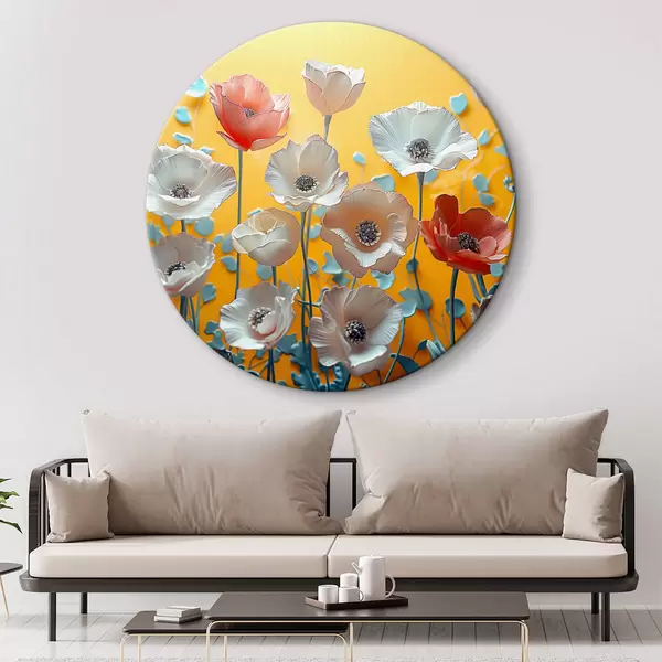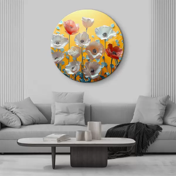 Cuadros redondos Peonías blancas y rojas sobre fondo amarillo r40975