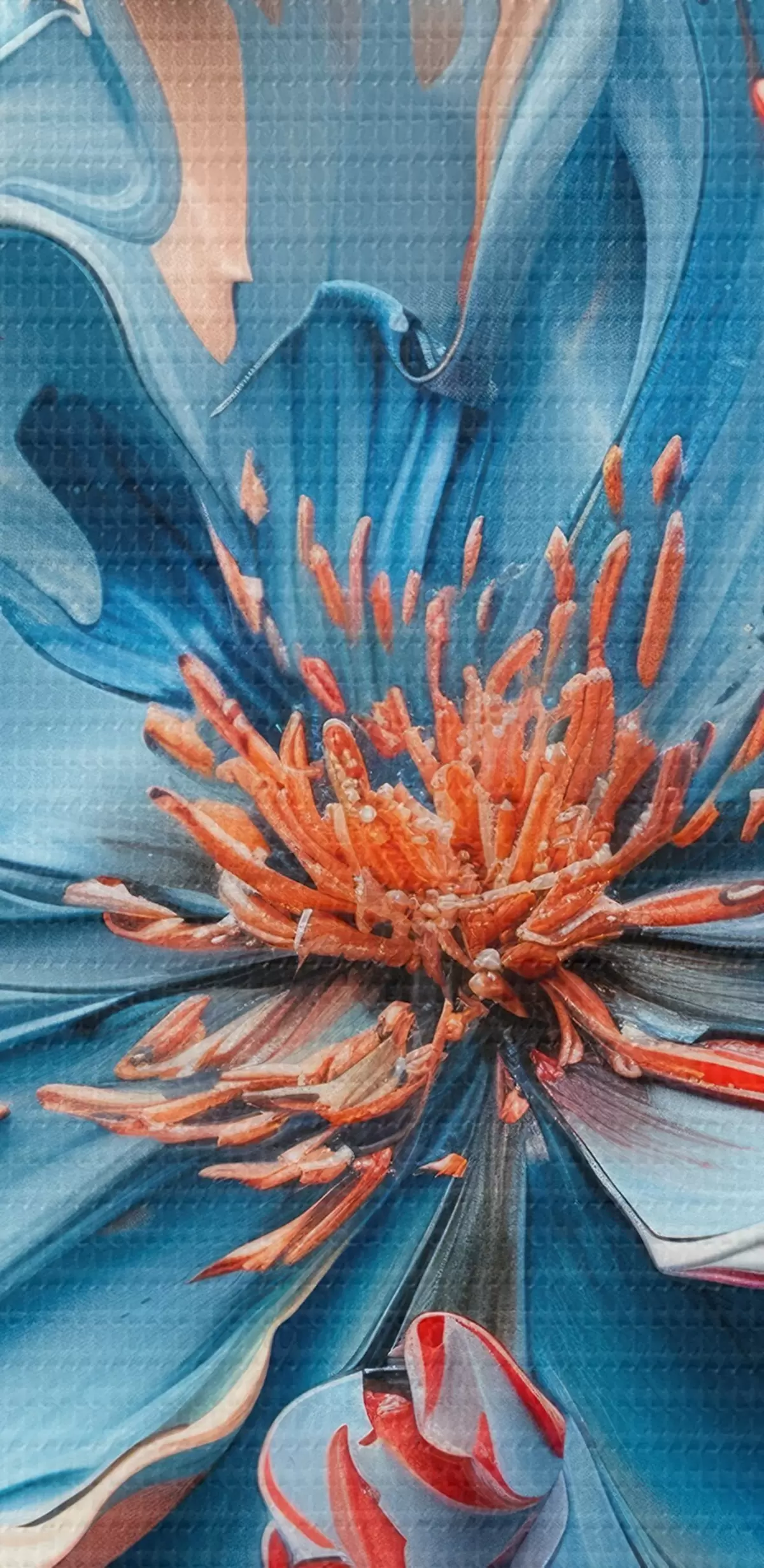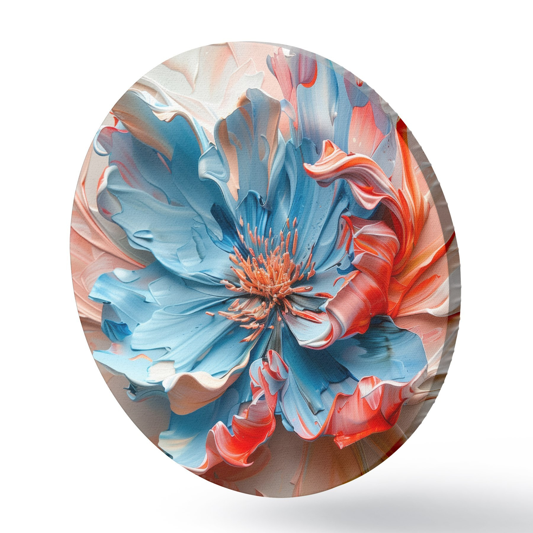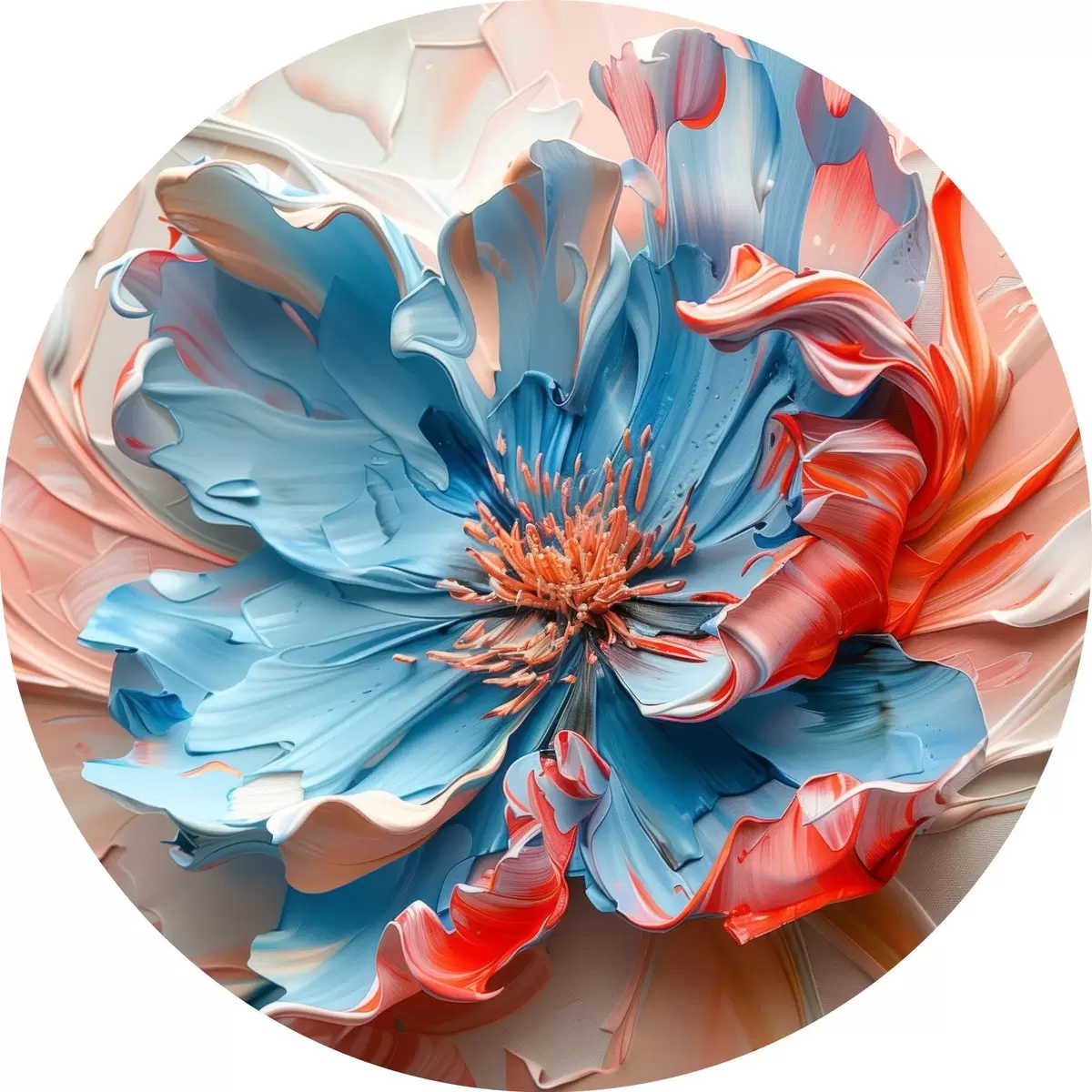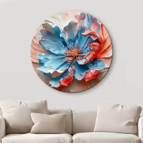 Cuadros redondos Amapola mágica con voluminosos pétalos en tonos melocotón y azul r40992