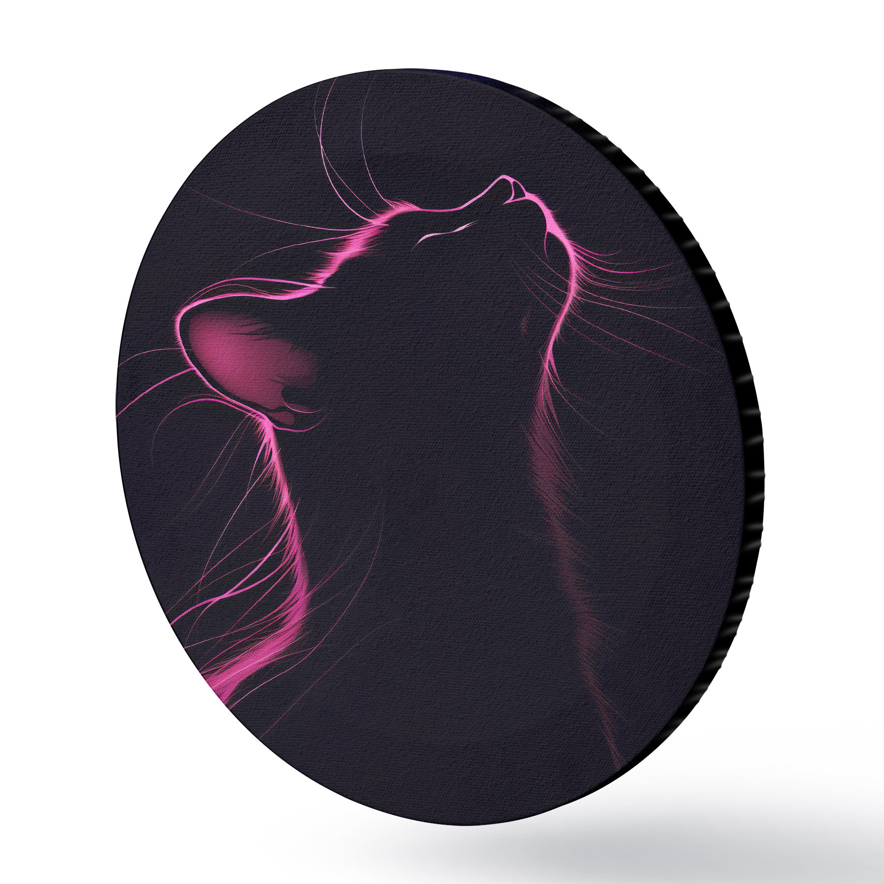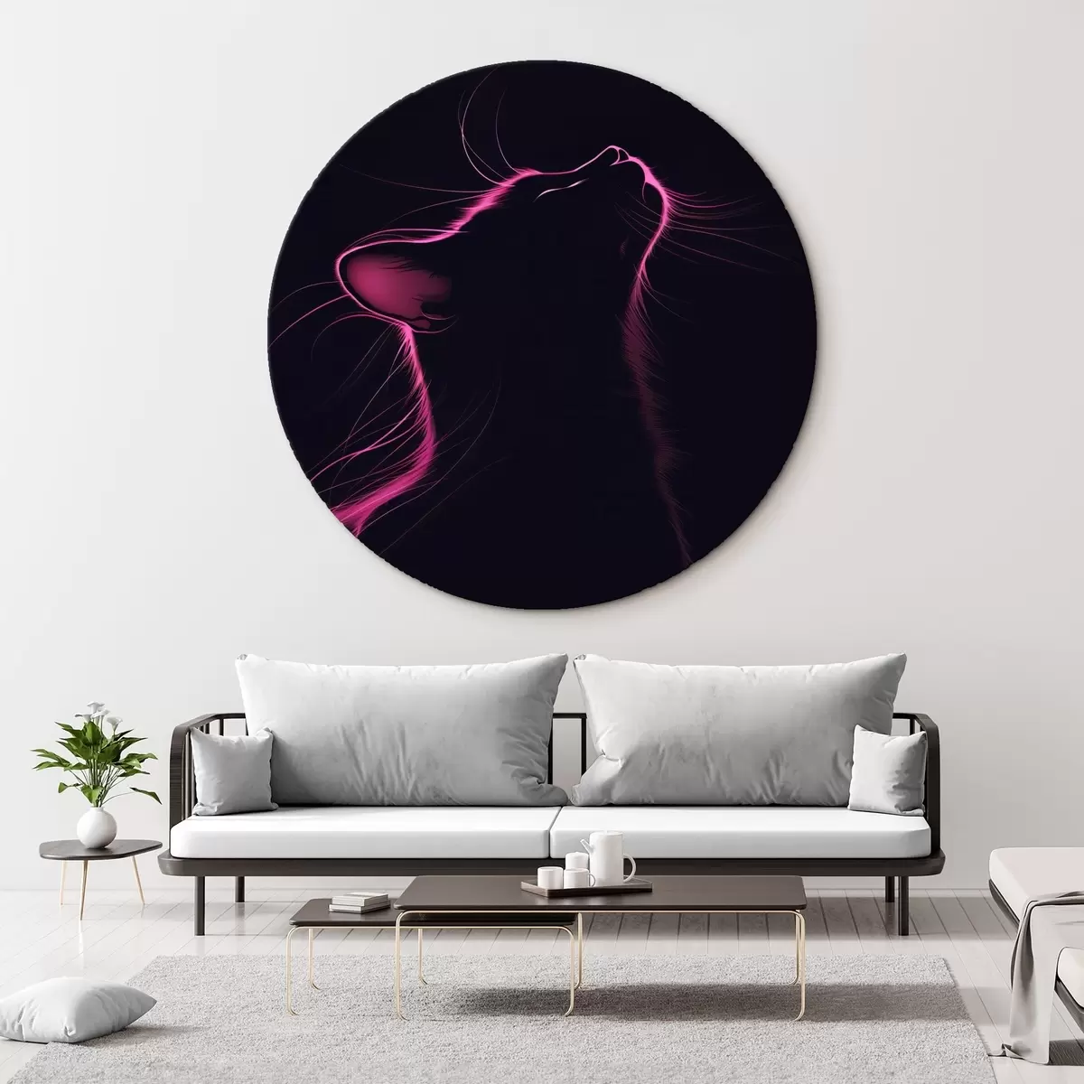 Cuadros redondos Gato rosa de neón sobre fondo negro r40994
