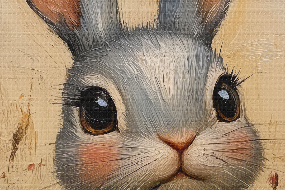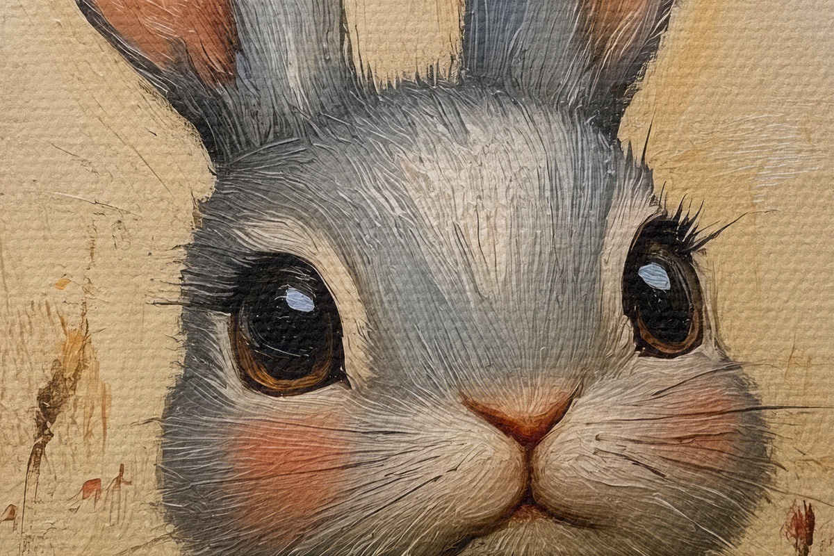 Foto Conejo en el campo entre flores con pinceladas Nr r40999