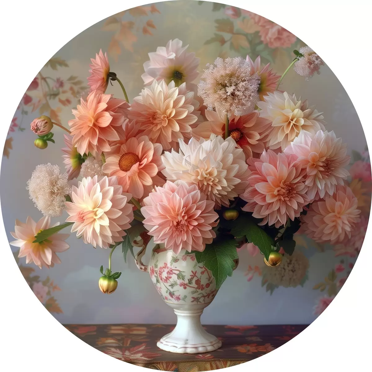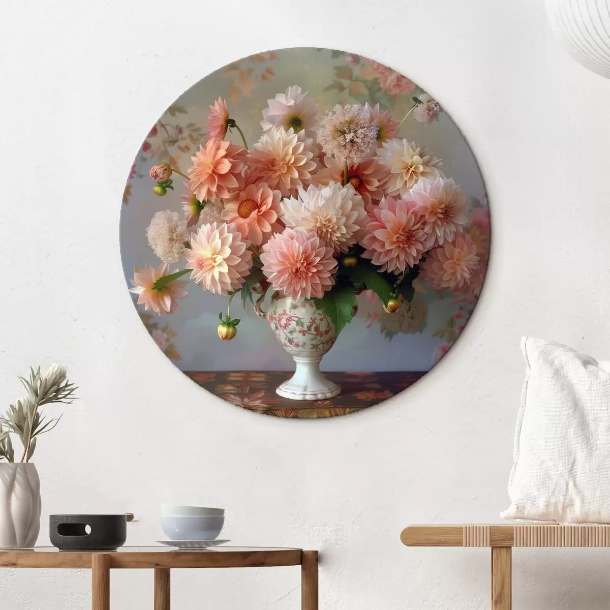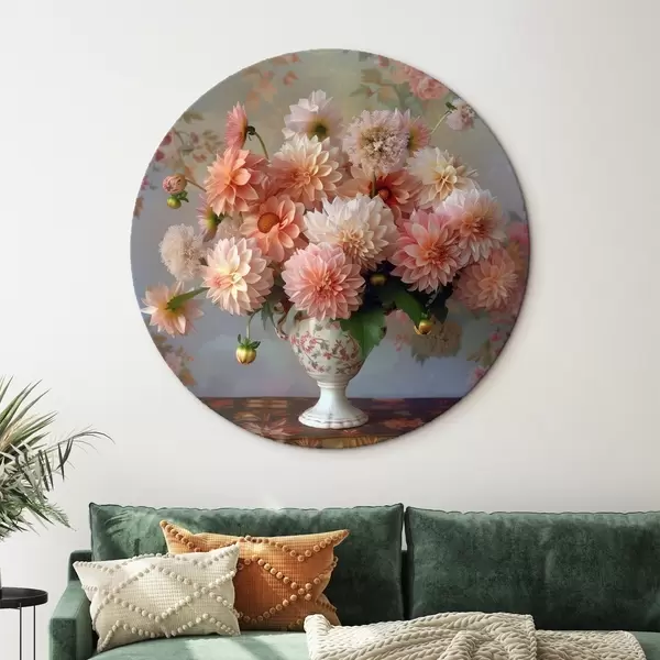 Cuadros redondos Un delicado ramo de crisantemos en un jarrón r41002