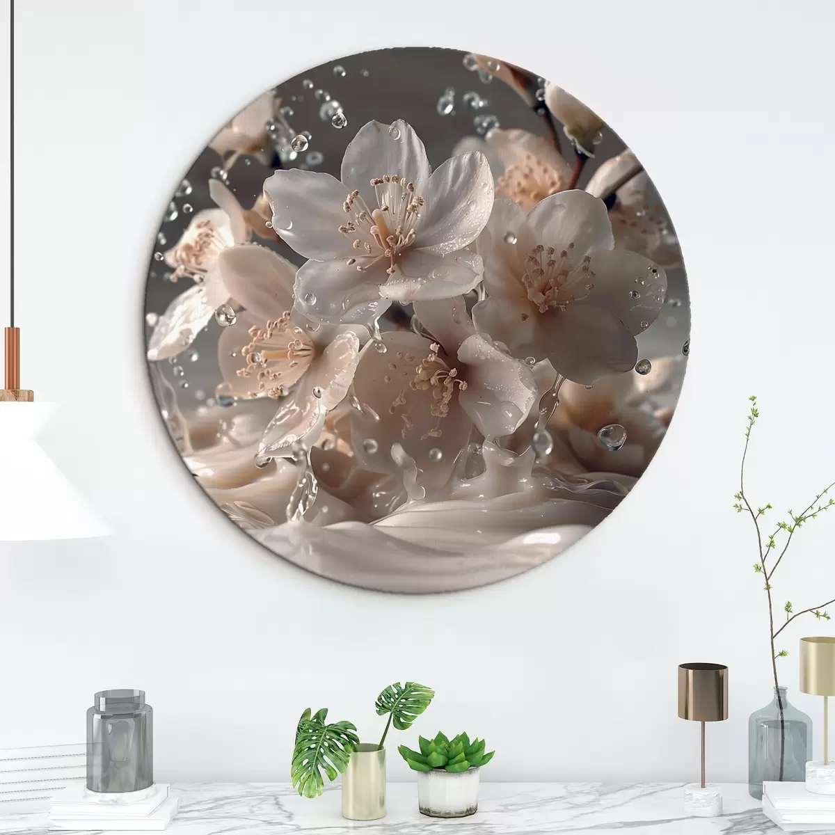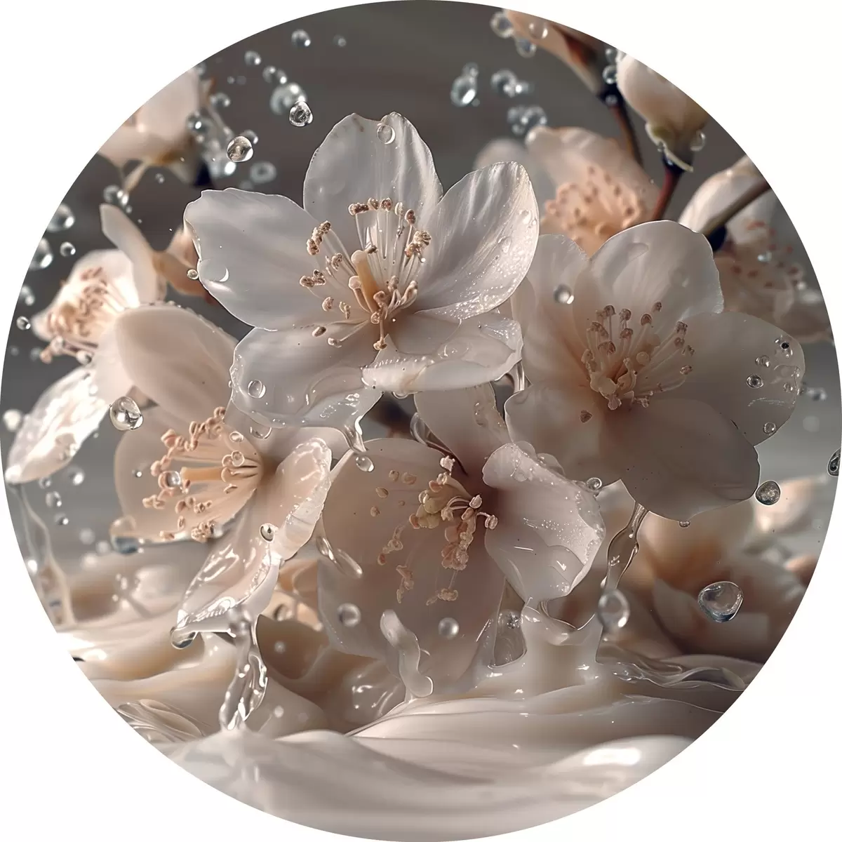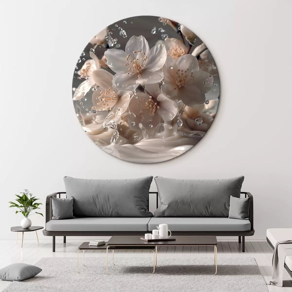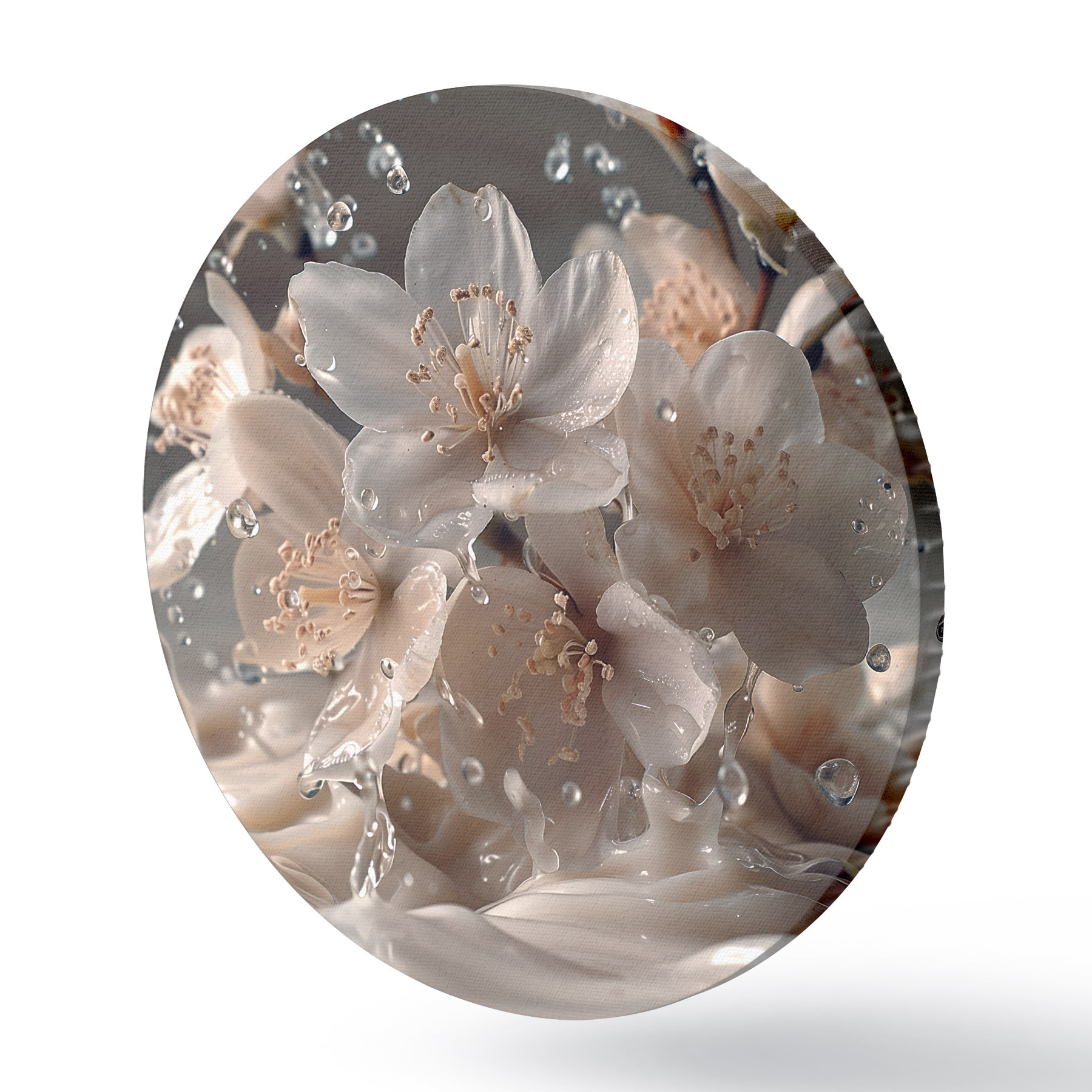 Cuadros redondos Flores de jazmín en un remolino de gotas r41003