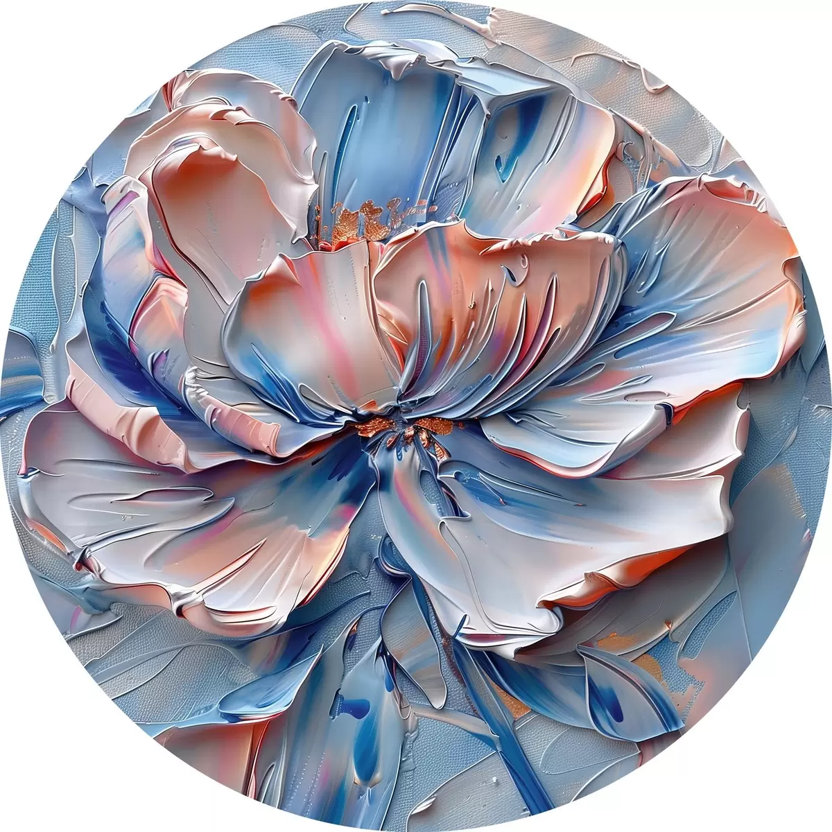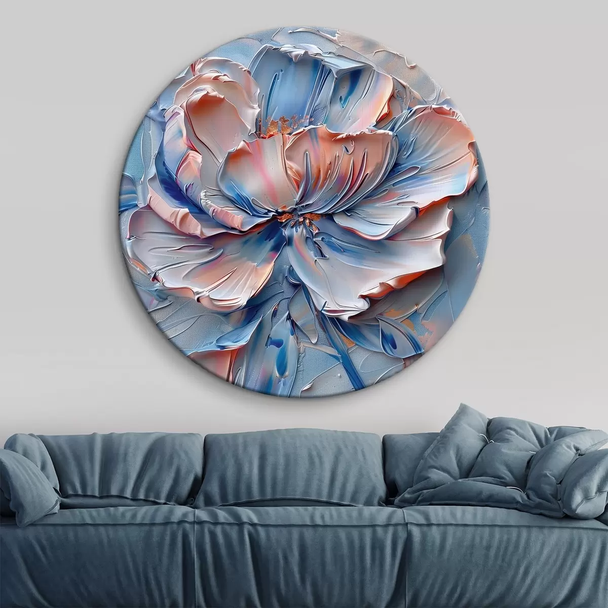 Cuadros redondos Una gran flor con atrevidas pinceladas en azul y melocotón r41004