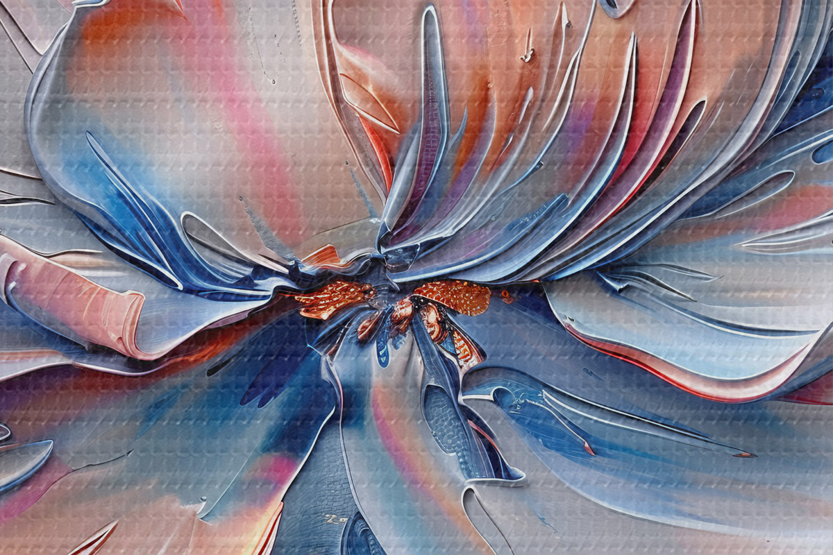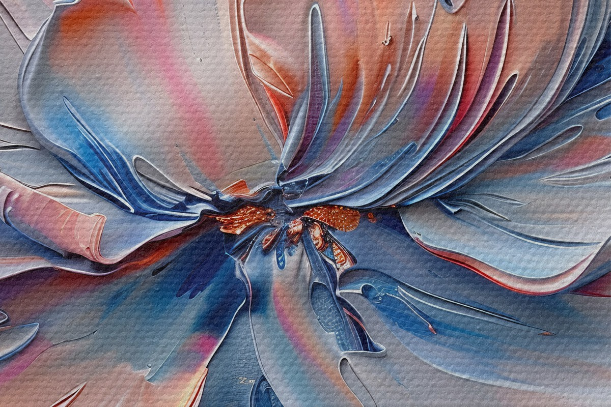 Foto Una gran flor con atrevidas pinceladas en azul y melocotón Nr r41004