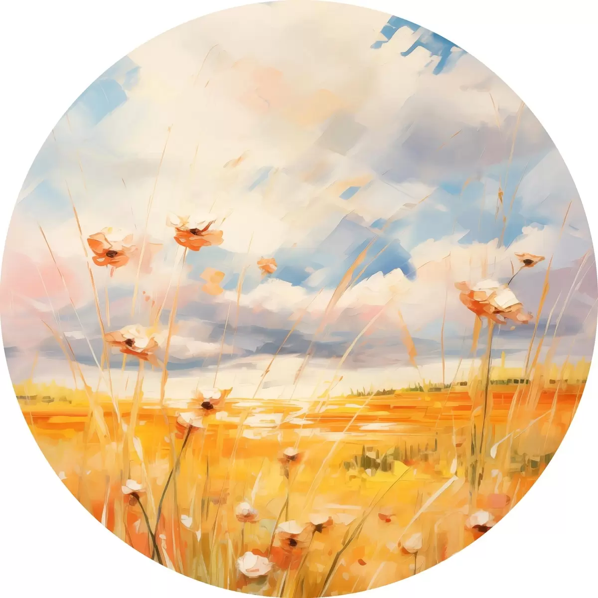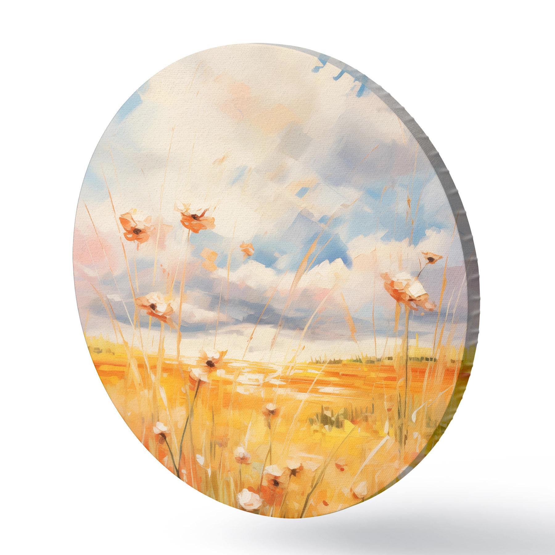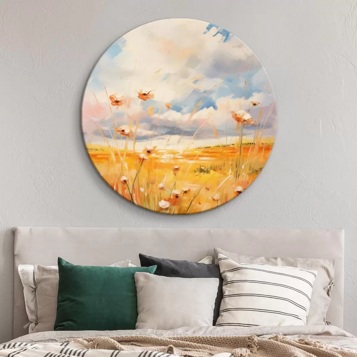 Cuadros redondos Campo con hierba seca contra el cielo con nubes r41014