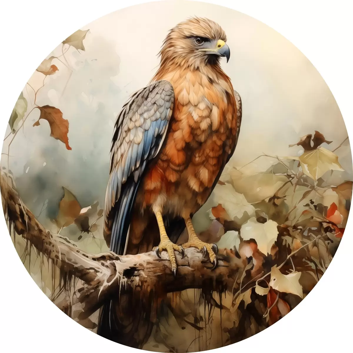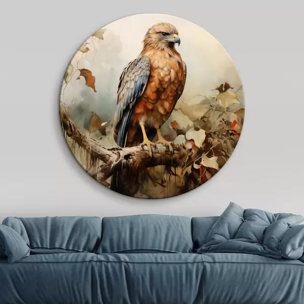 Cuadros redondos Halcón sentado en una rama acuarela r41021