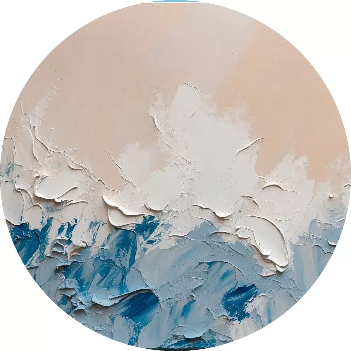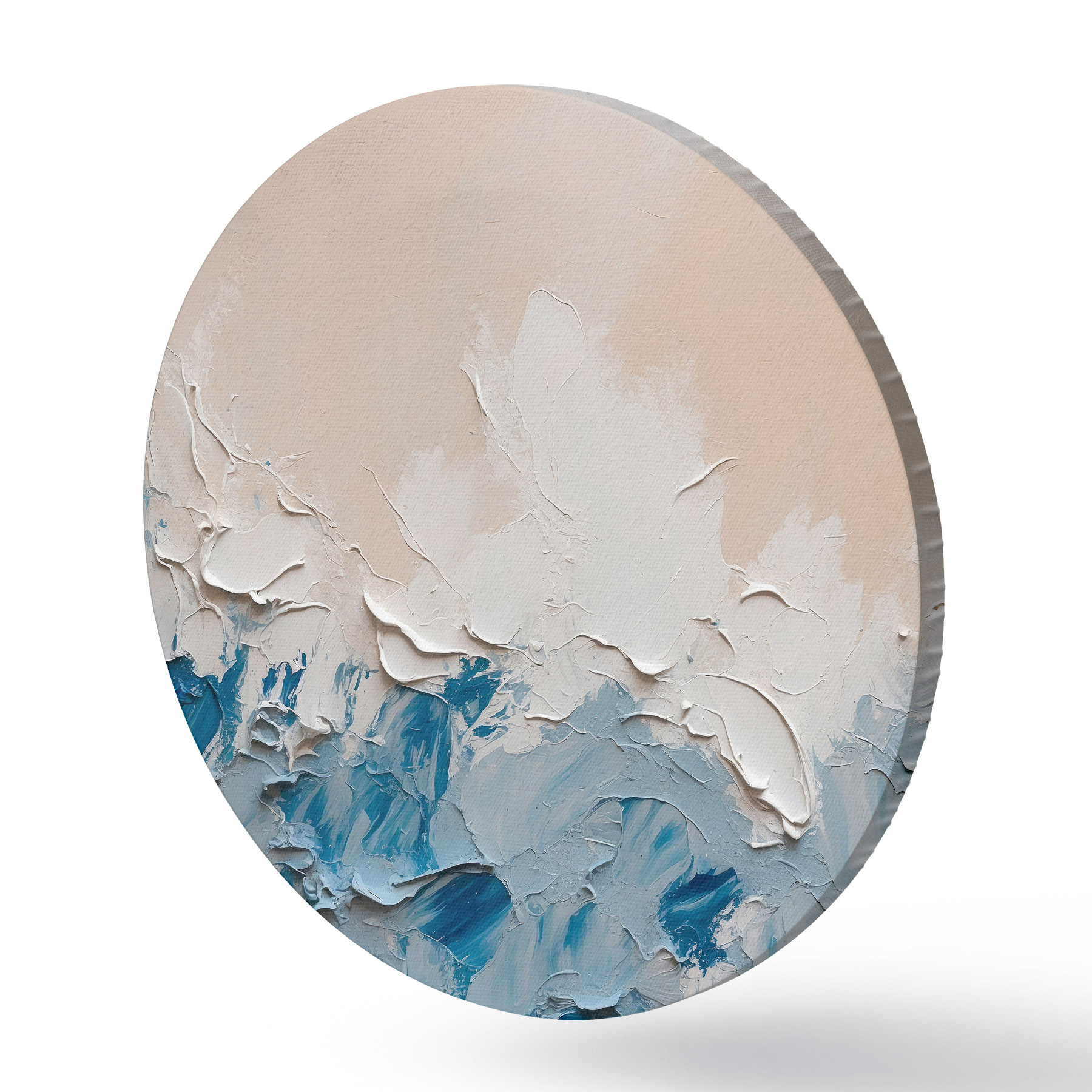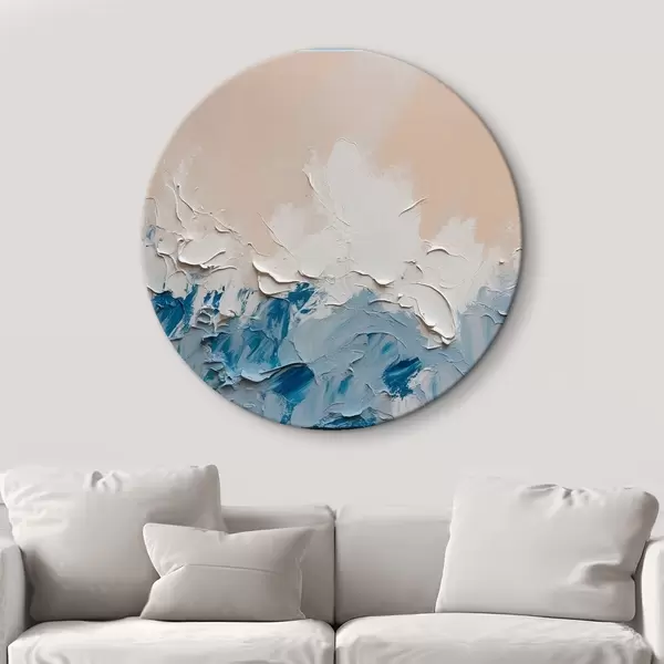 Cuadros redondos Abstracción con óleos blancos, azules y celestes r41027