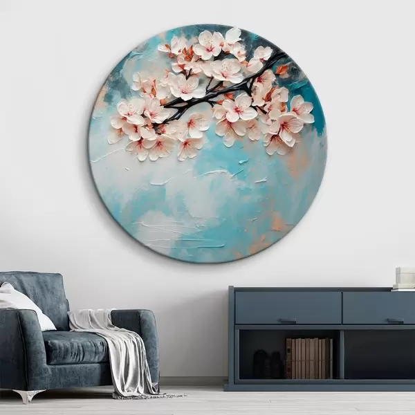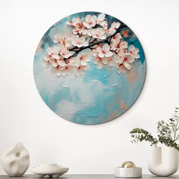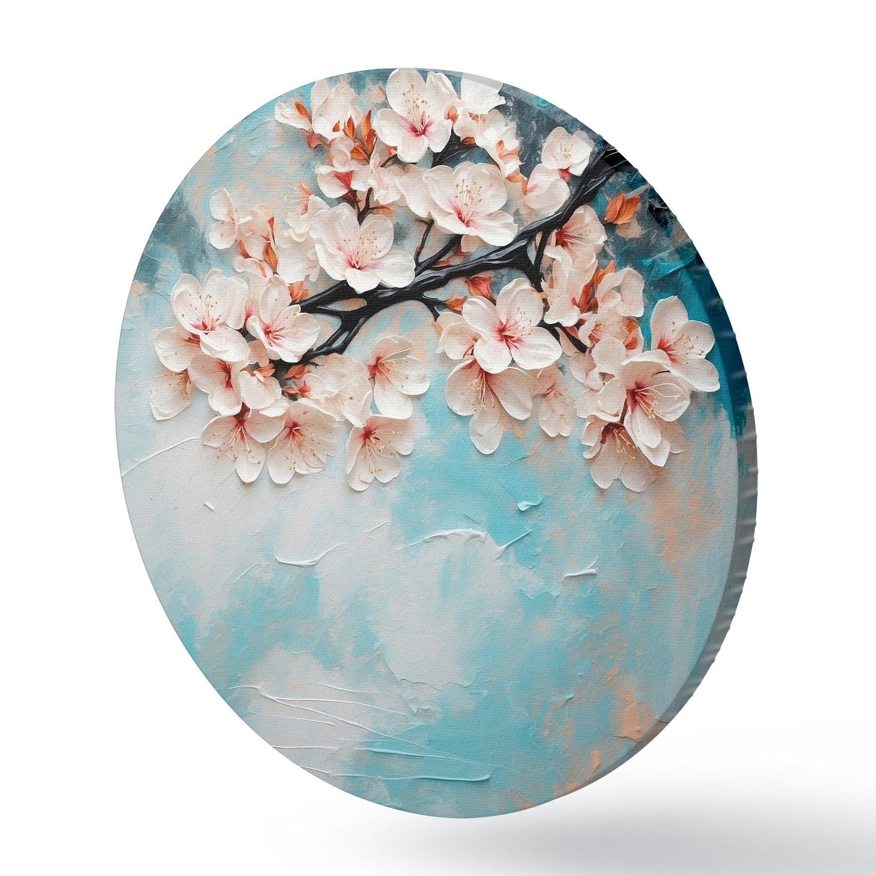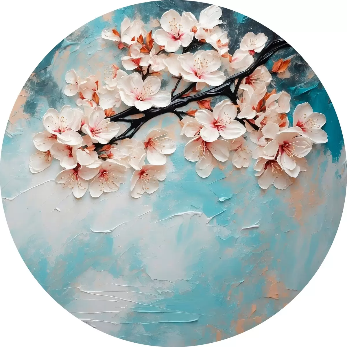 Cuadros redondos Rama en flor sobre fondo abstracto al óleo r41031
