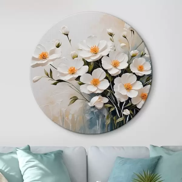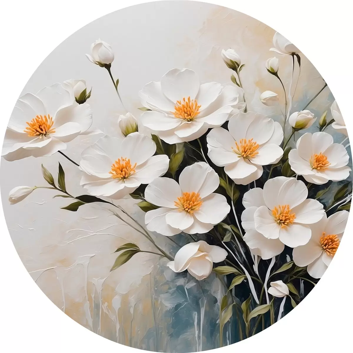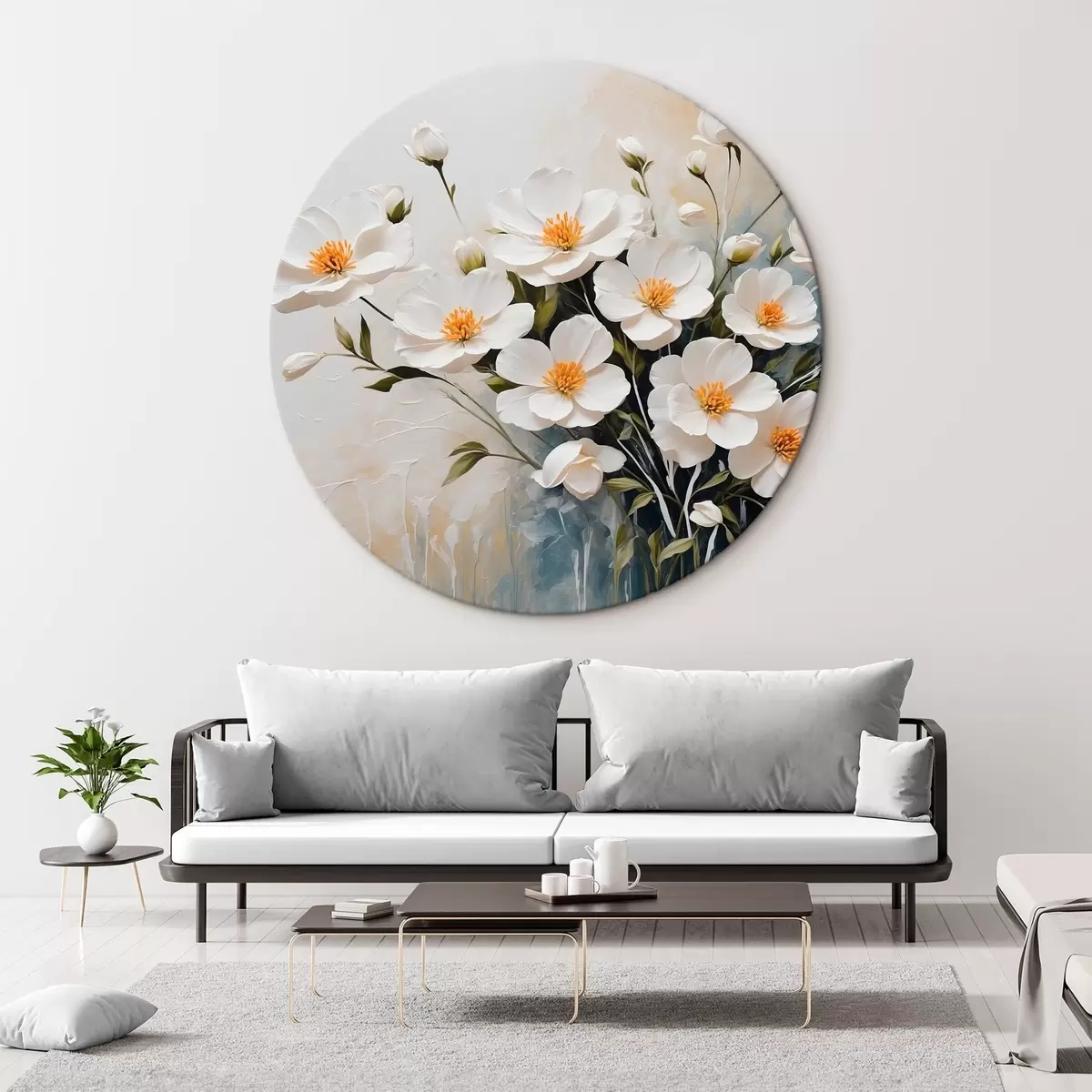 Cuadros redondos Flores blancas sobre fondo borroso r41039