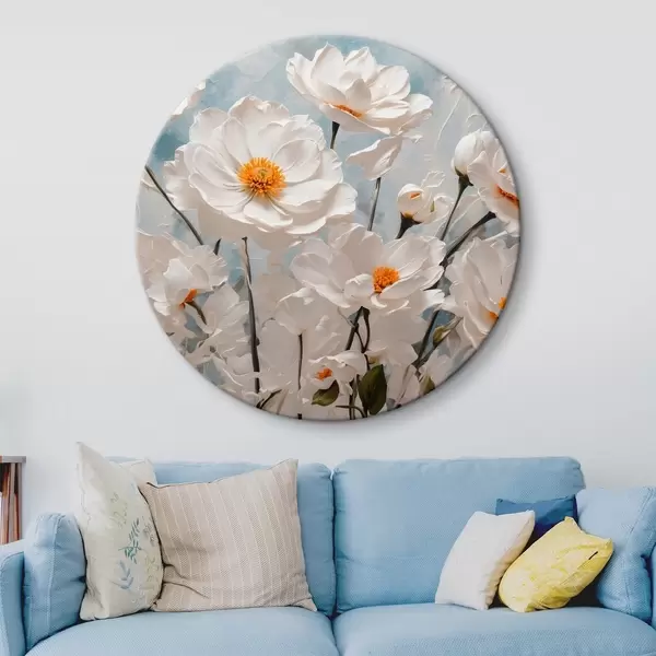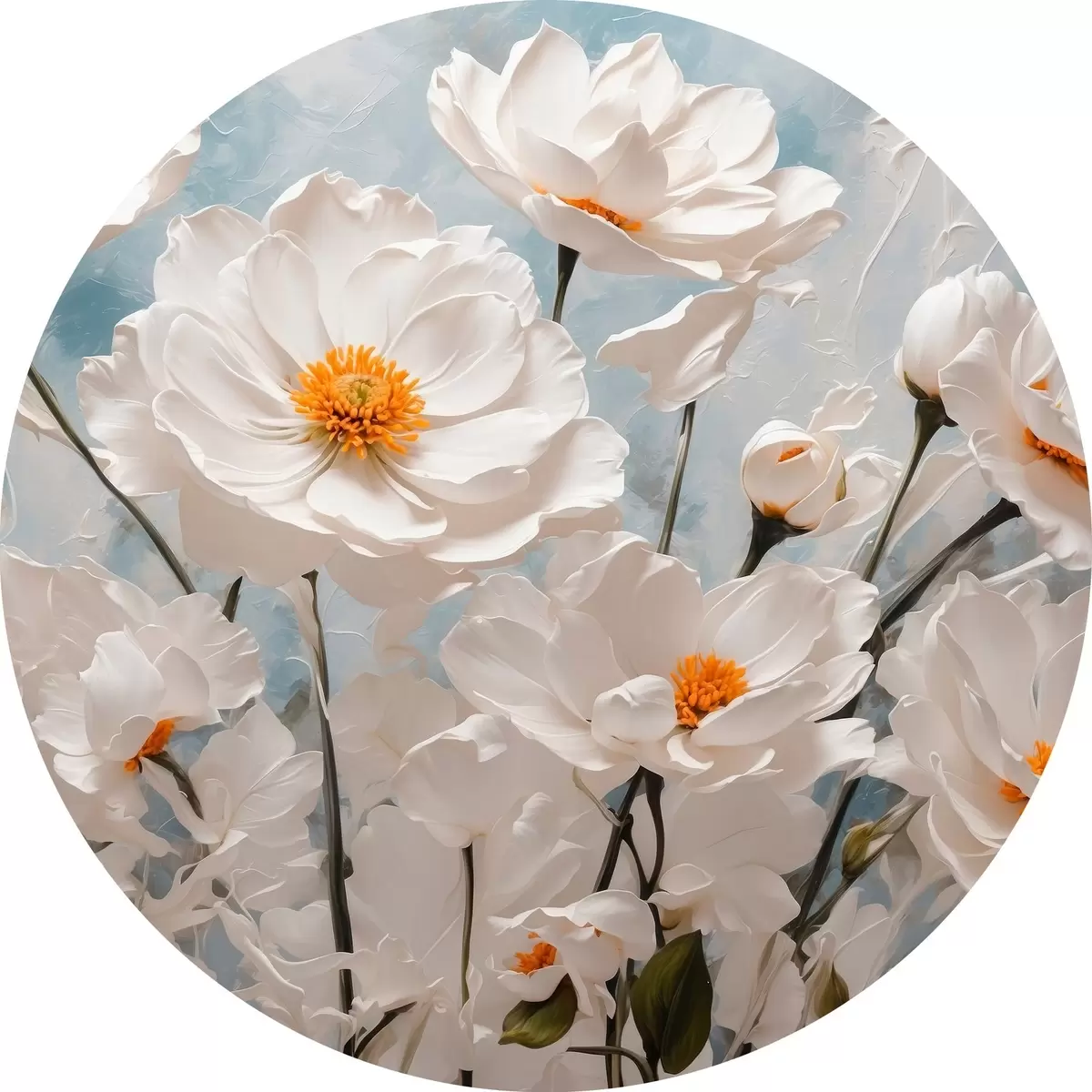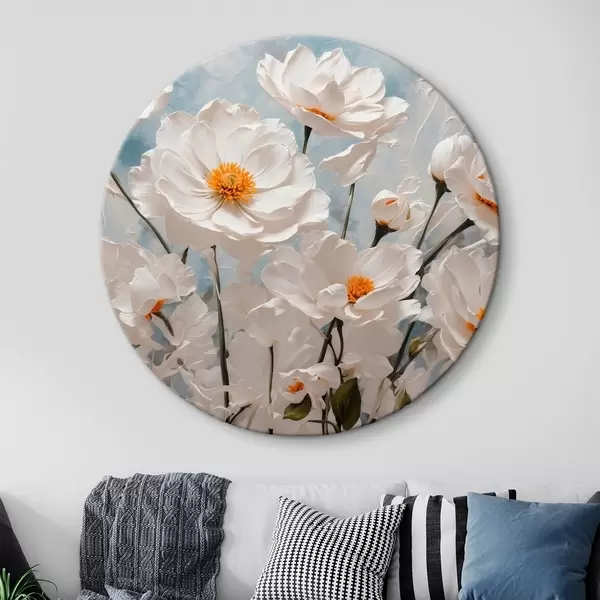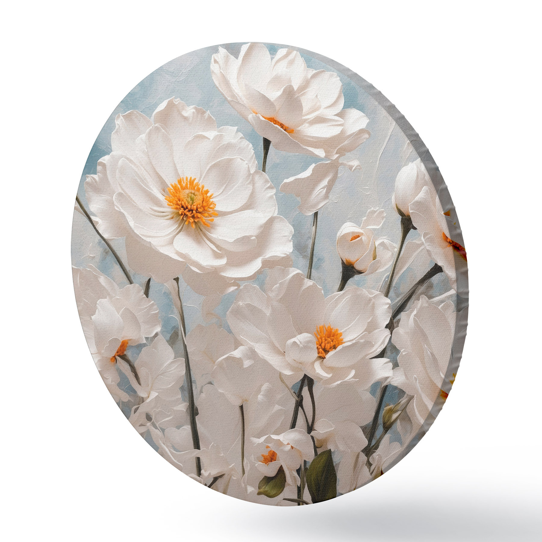 Cuadros redondos Flores blancas sobre fondo de aceite azul y blanco r41041
