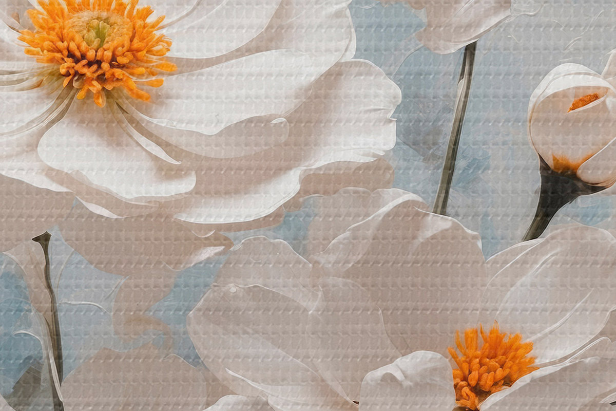 Foto Flores blancas sobre fondo de aceite azul y blanco Nr r41041