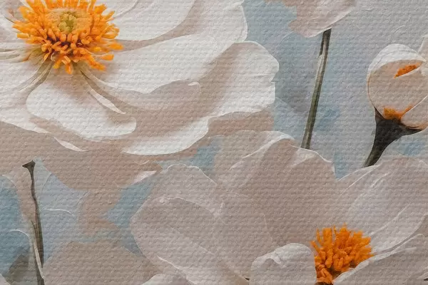 Foto Flores blancas sobre fondo de aceite azul y blanco Nr r41041