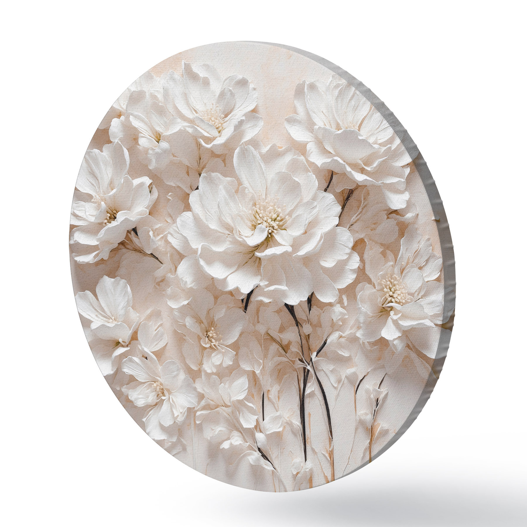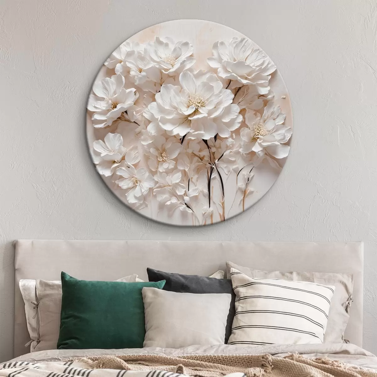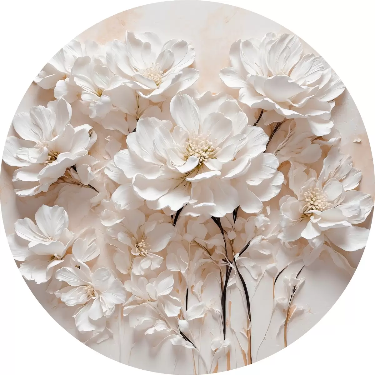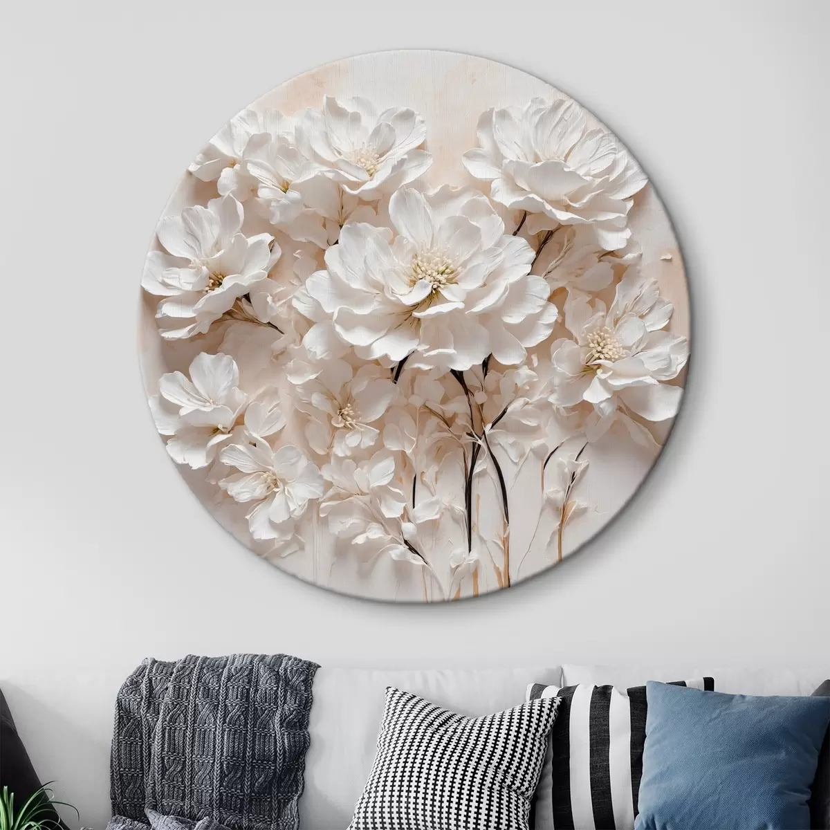 Cuadros redondos Flores blancas sobre fondo blanco y naranja r41042