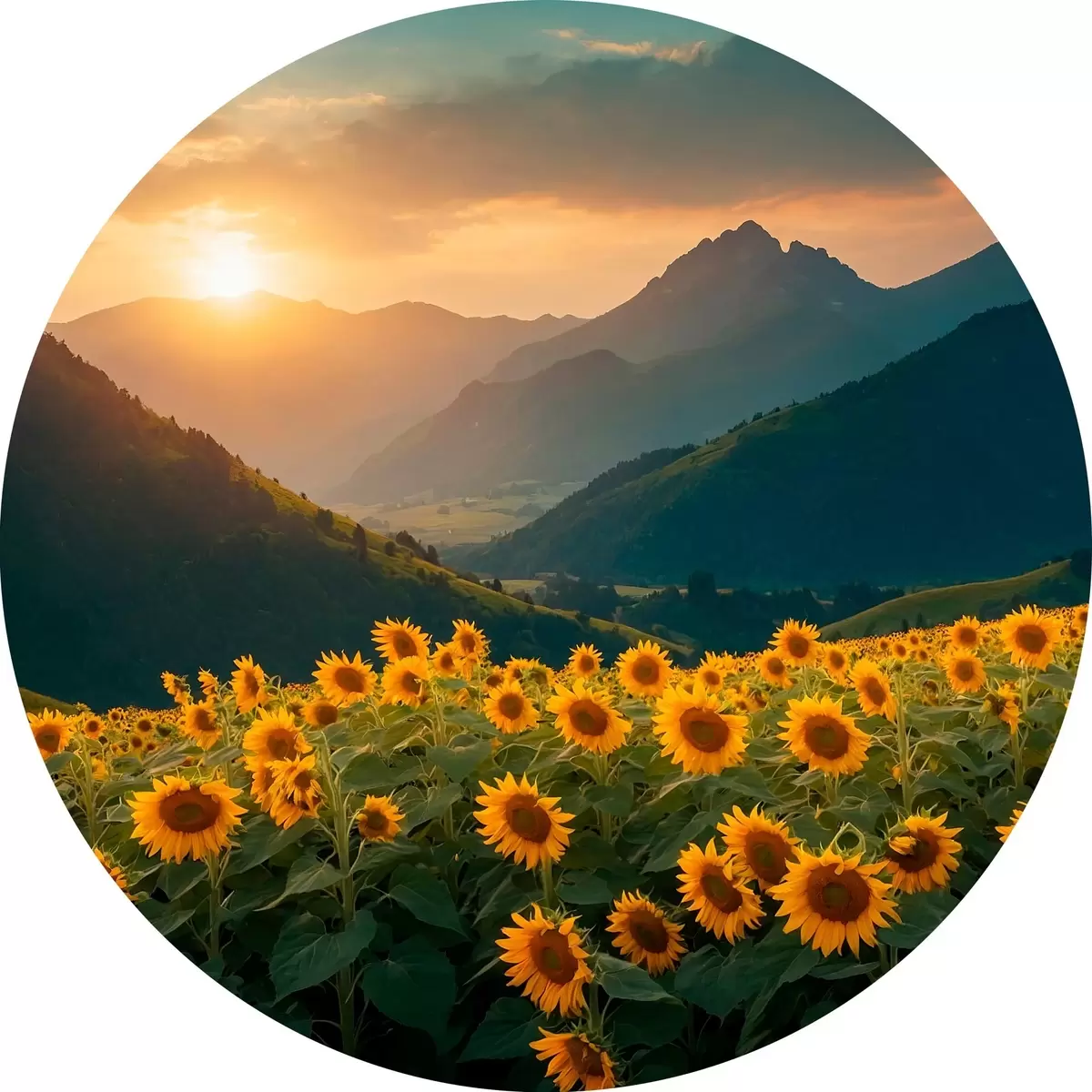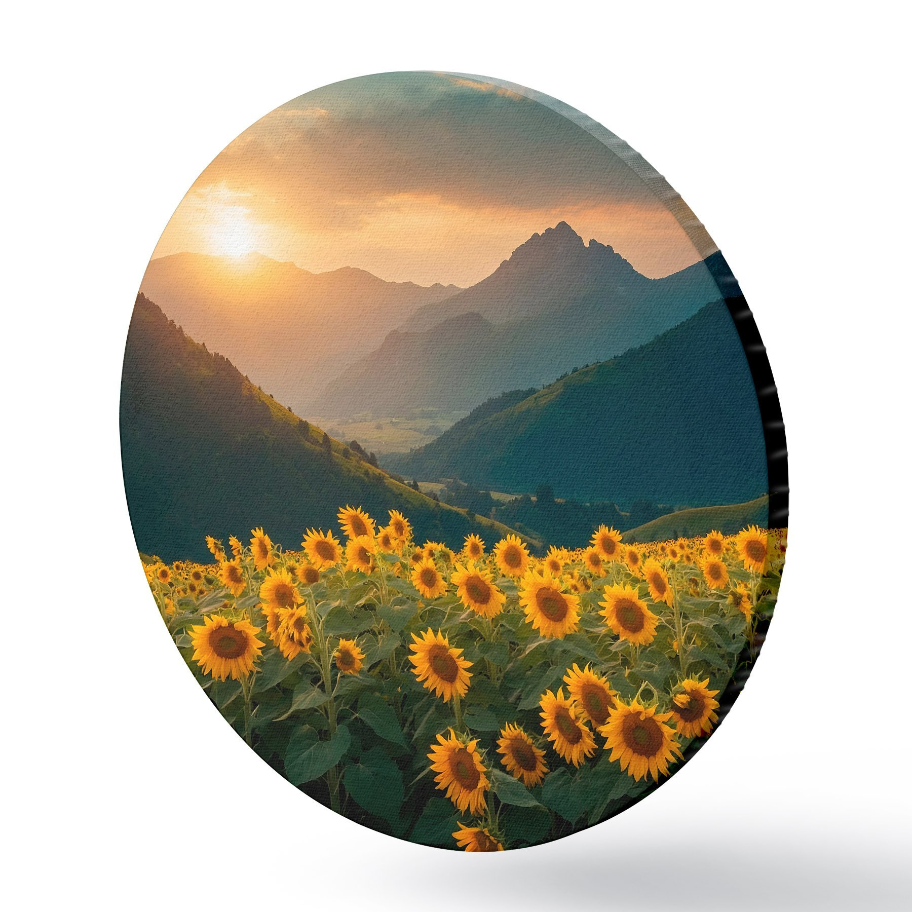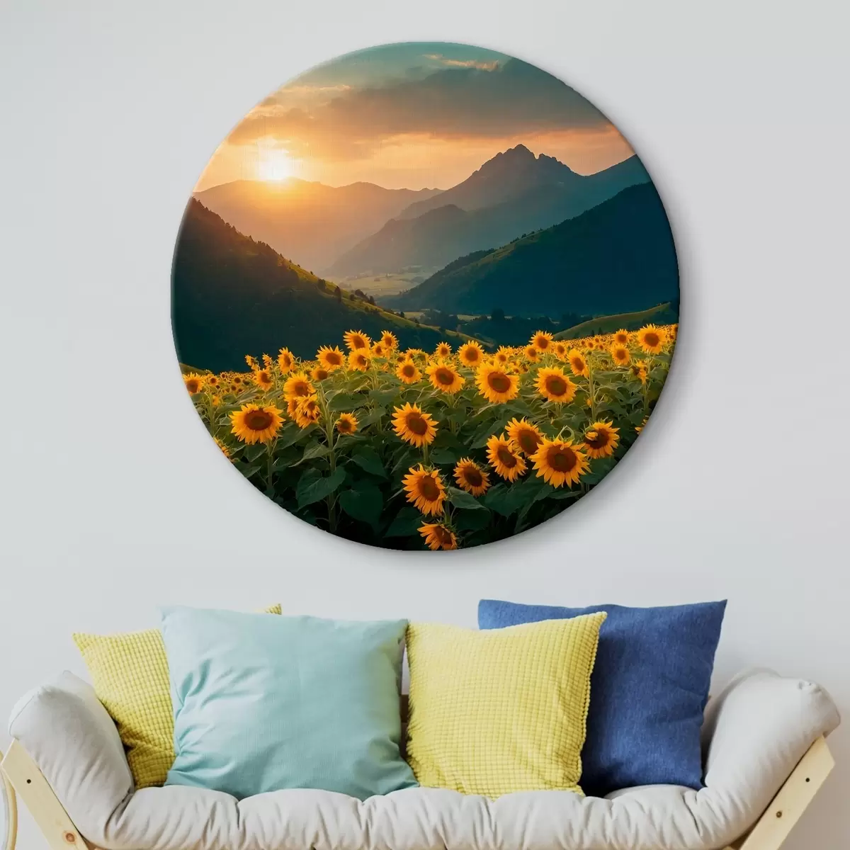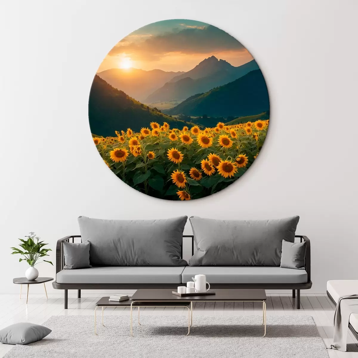 Cuadros redondos Girasoles sobre un fondo de montañas r41049