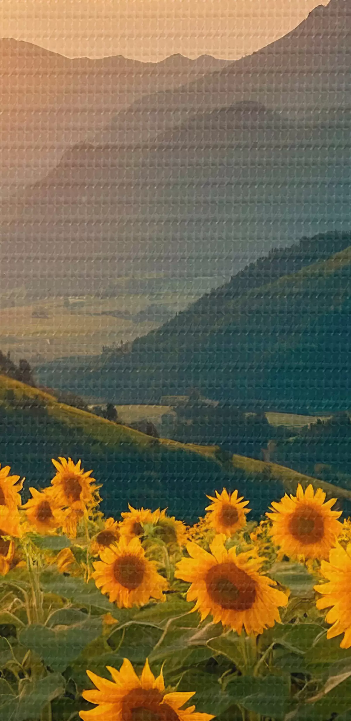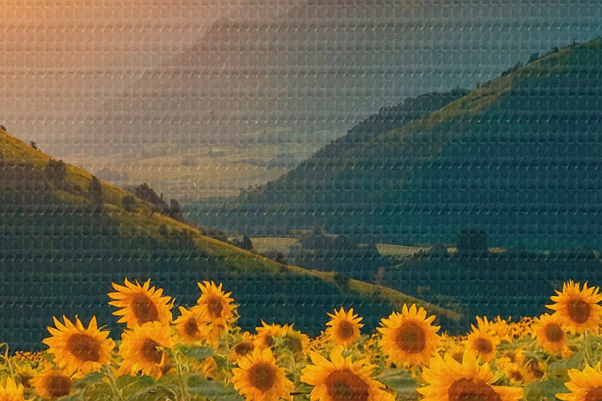 Foto Girasoles sobre un fondo de montañas Nr r41049