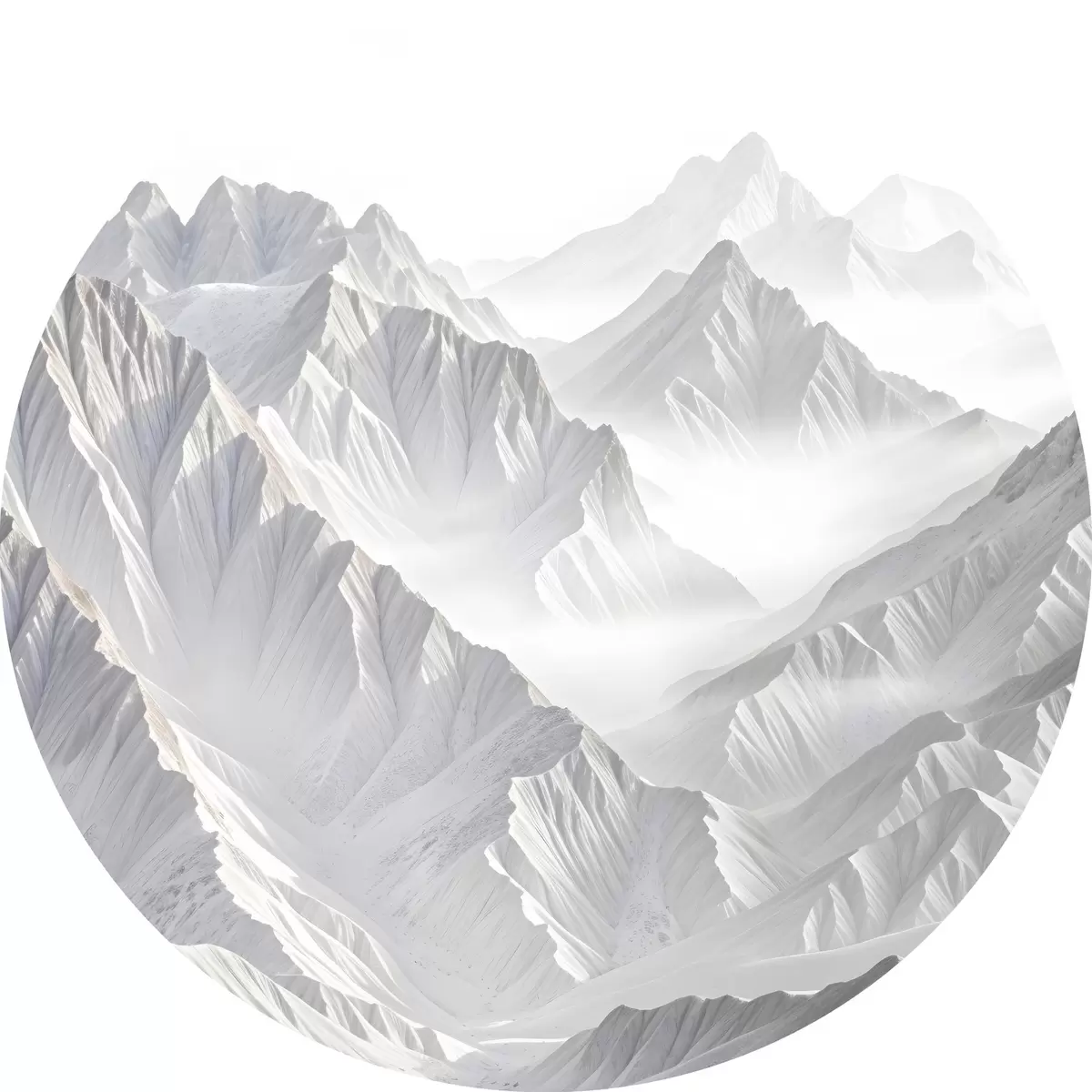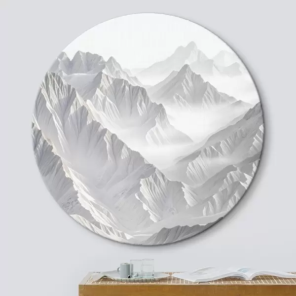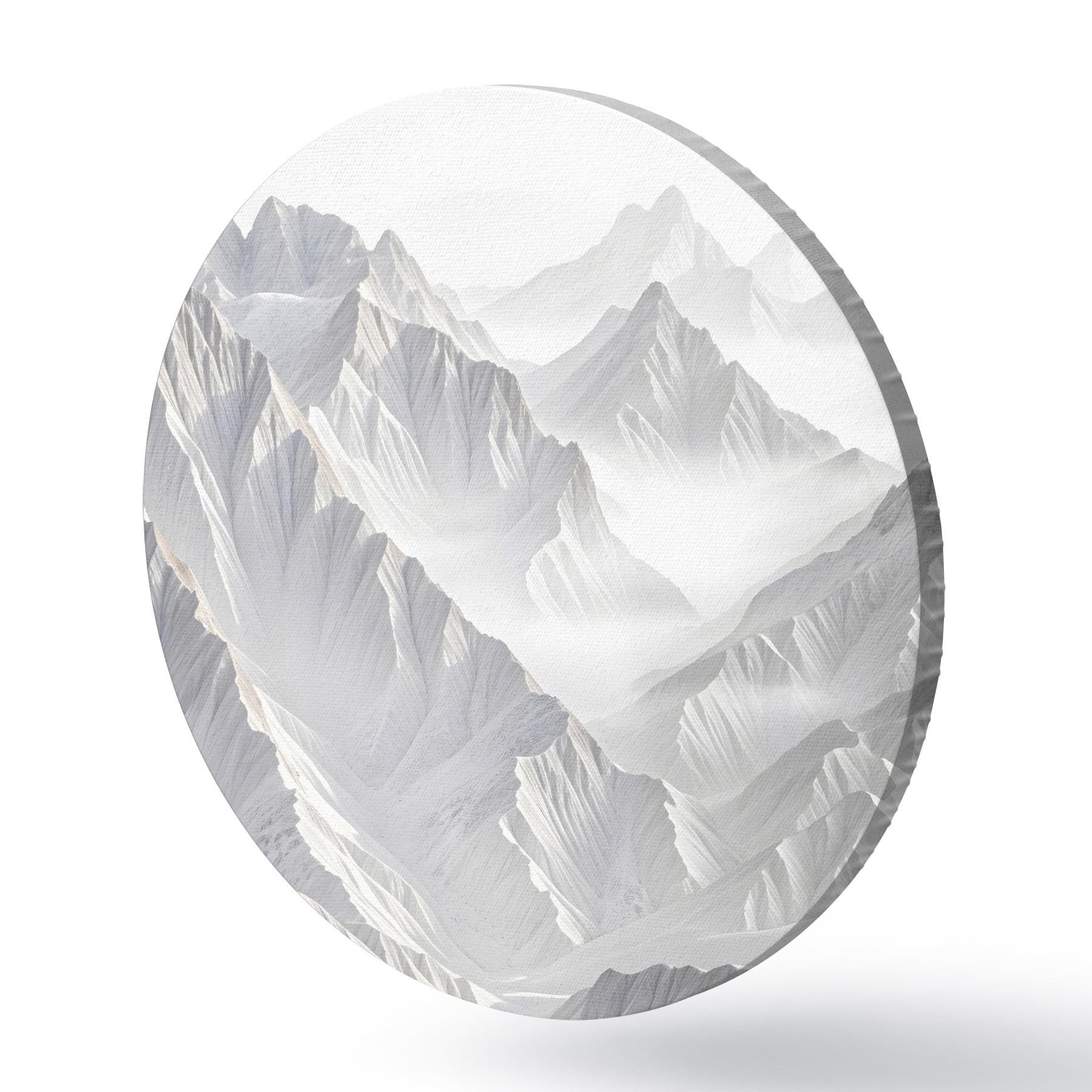 Cuadros redondos Picos montañosos minimalistas nevados en un paisaje brumoso y neblinoso r41083
