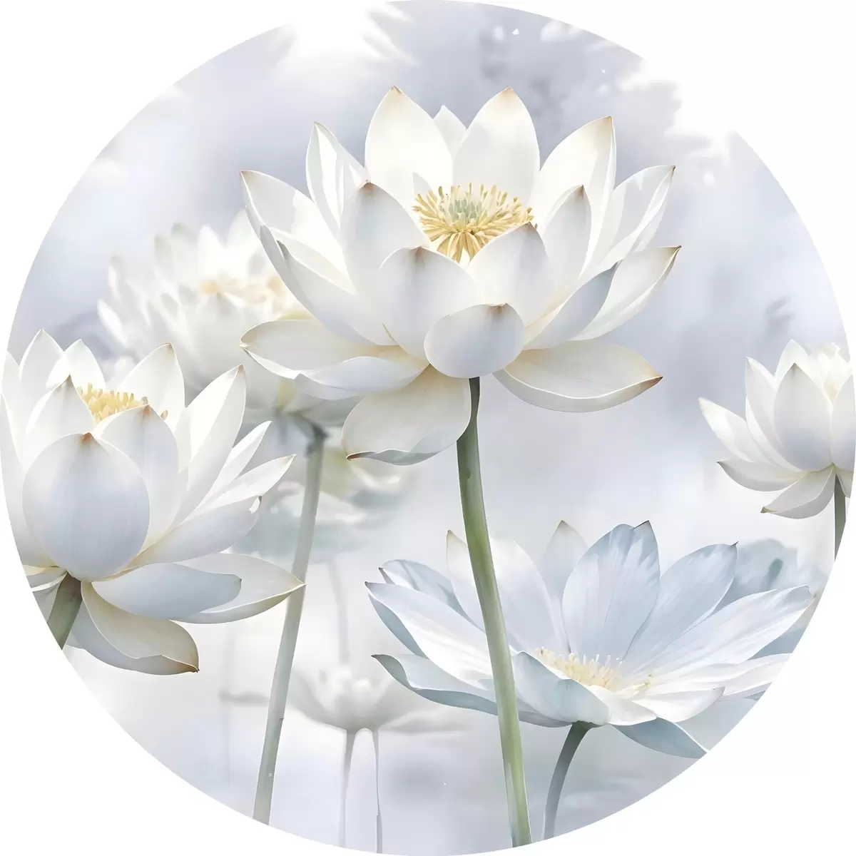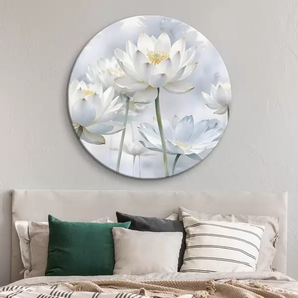 Cuadros redondos Flores de loto blancas en colores pastel sobre un fondo abstracto de acuarela con niebla r41100