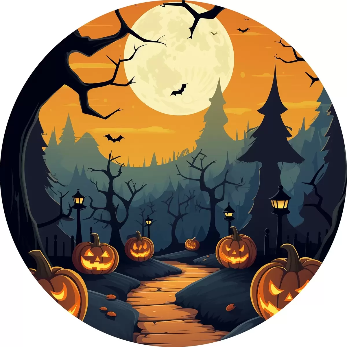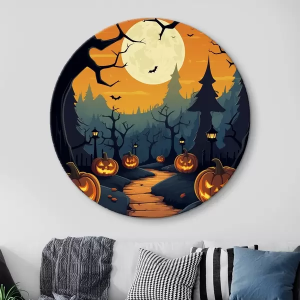 Cuadros redondos Halloween, camino en el bosque r41135
