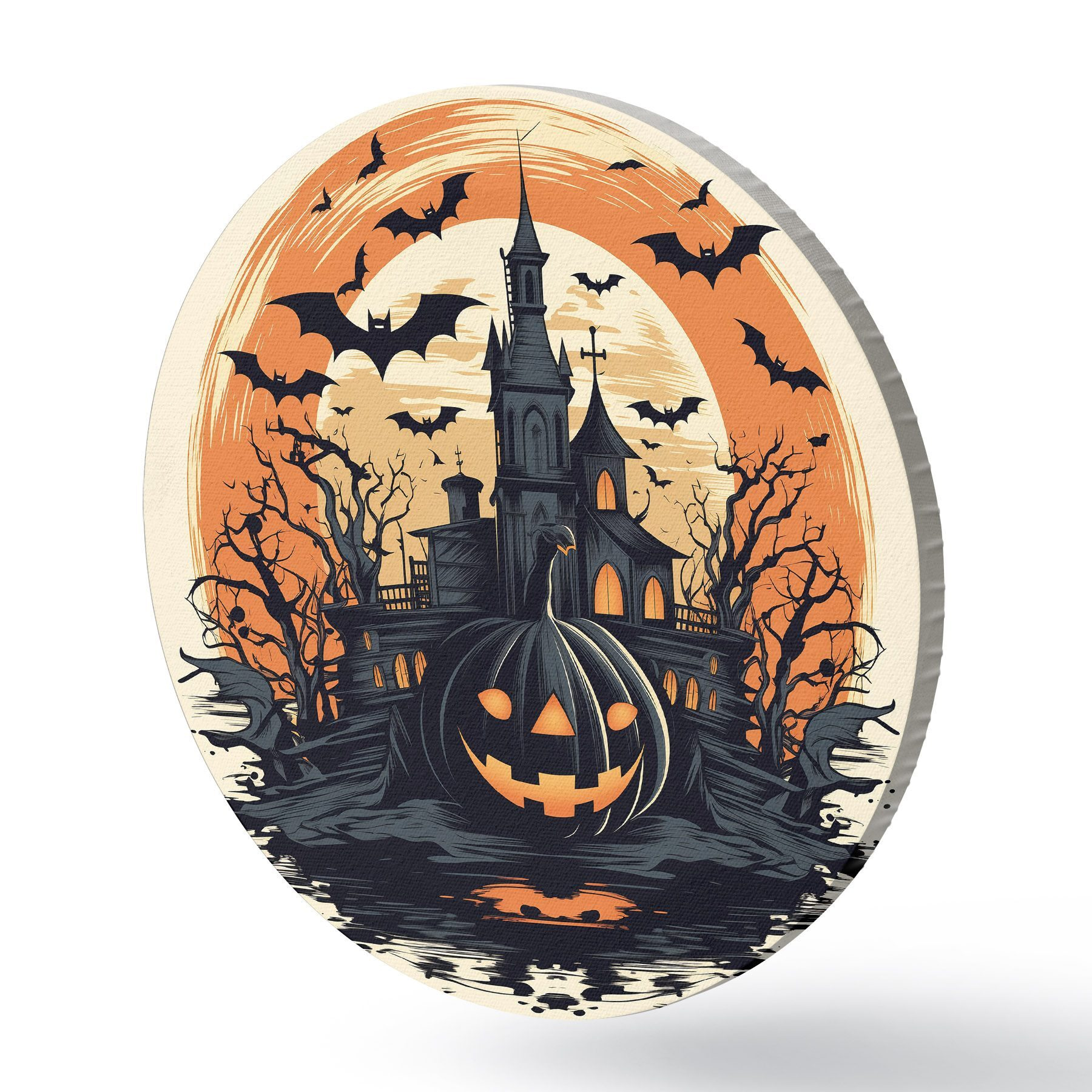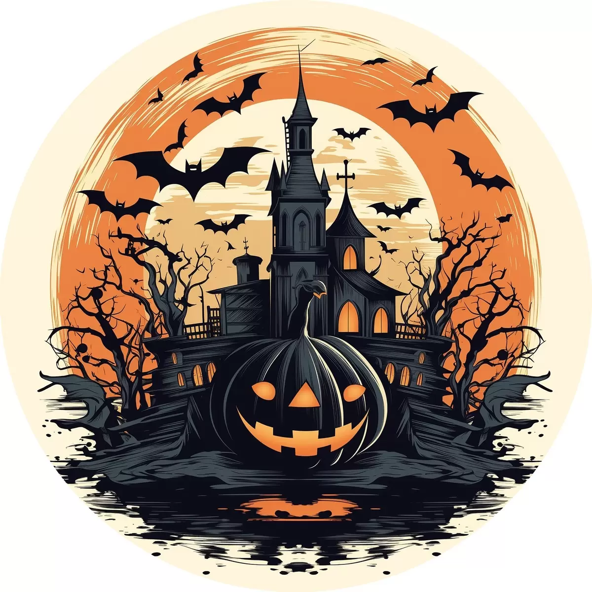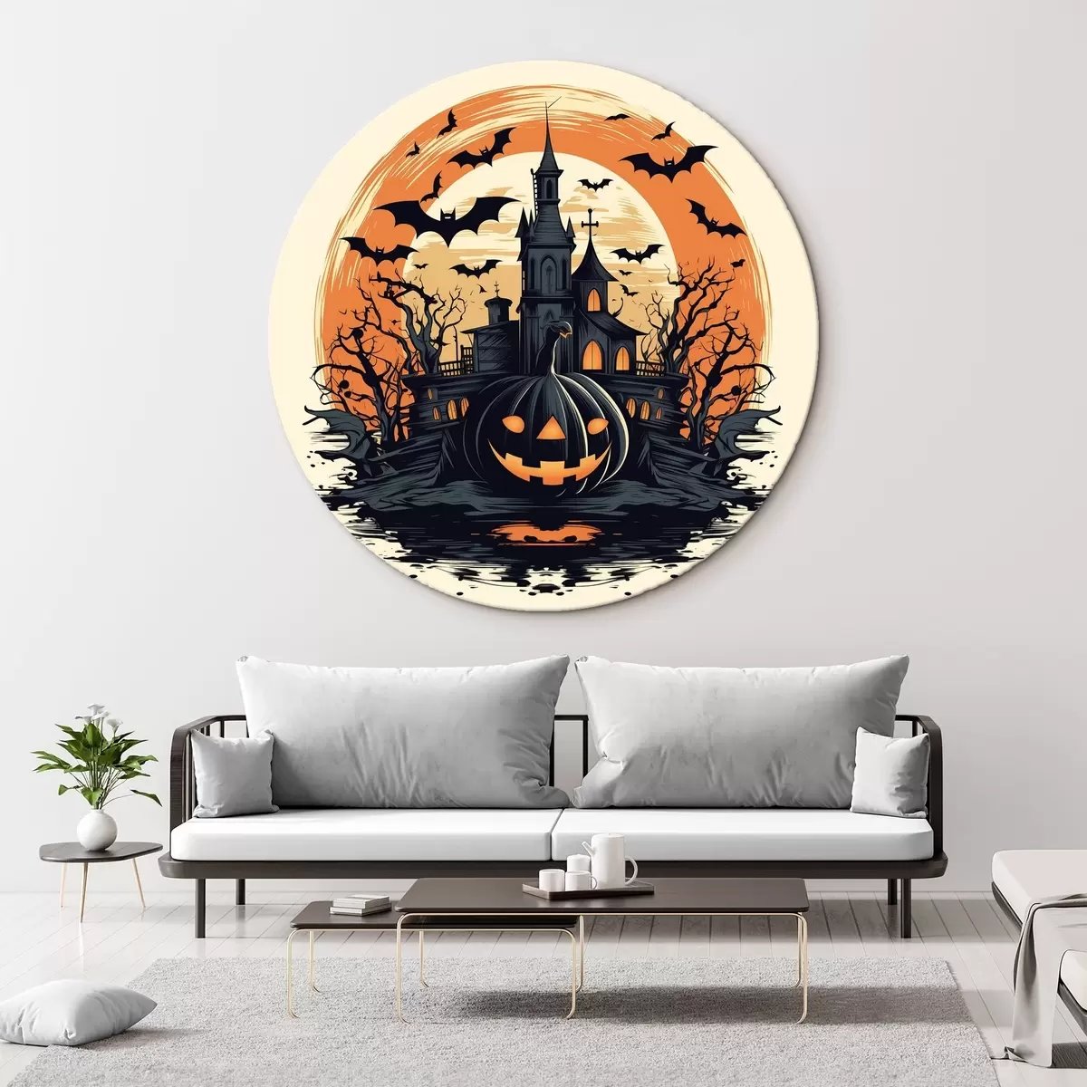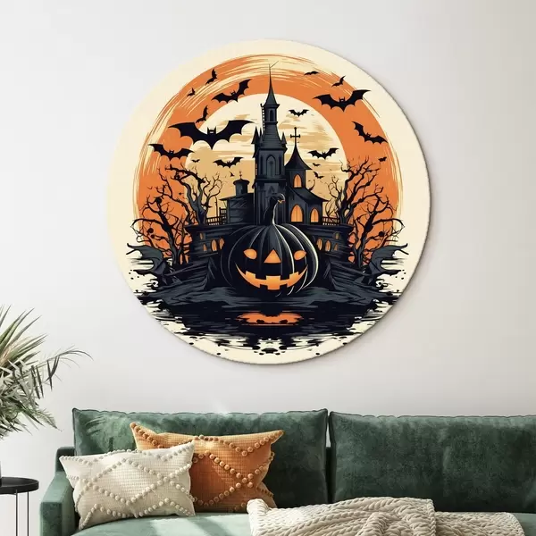 Cuadros redondos Castillo, murciélagos y calabazas r41137