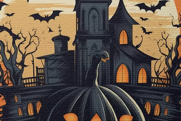 Foto Castillo, murciélagos y calabazas Nr r41137