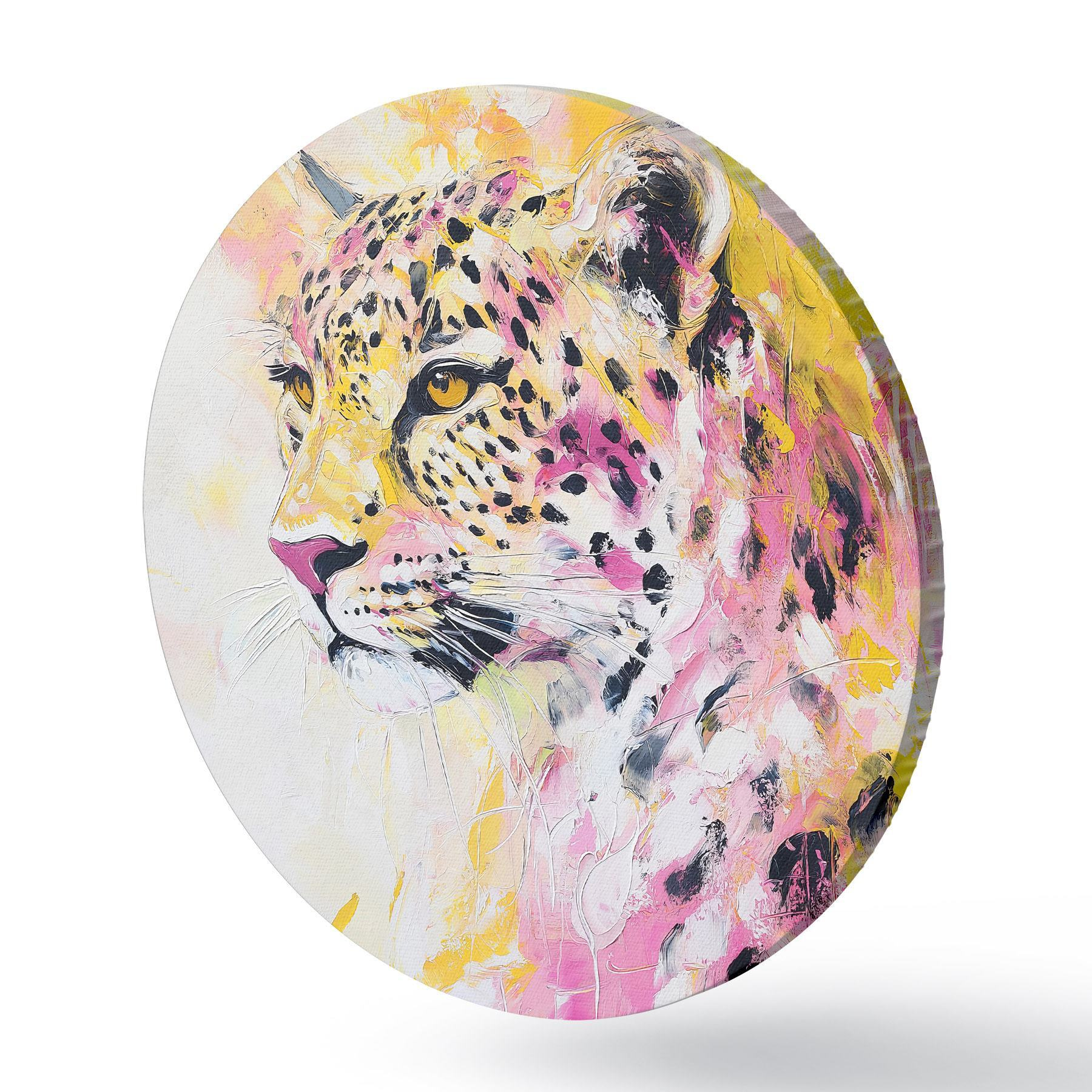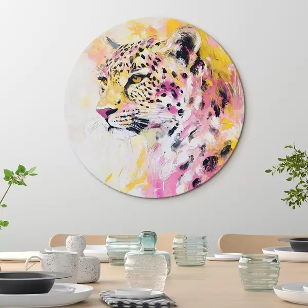 Cuadros redondos Leopardo amarillo y rosa r41156
