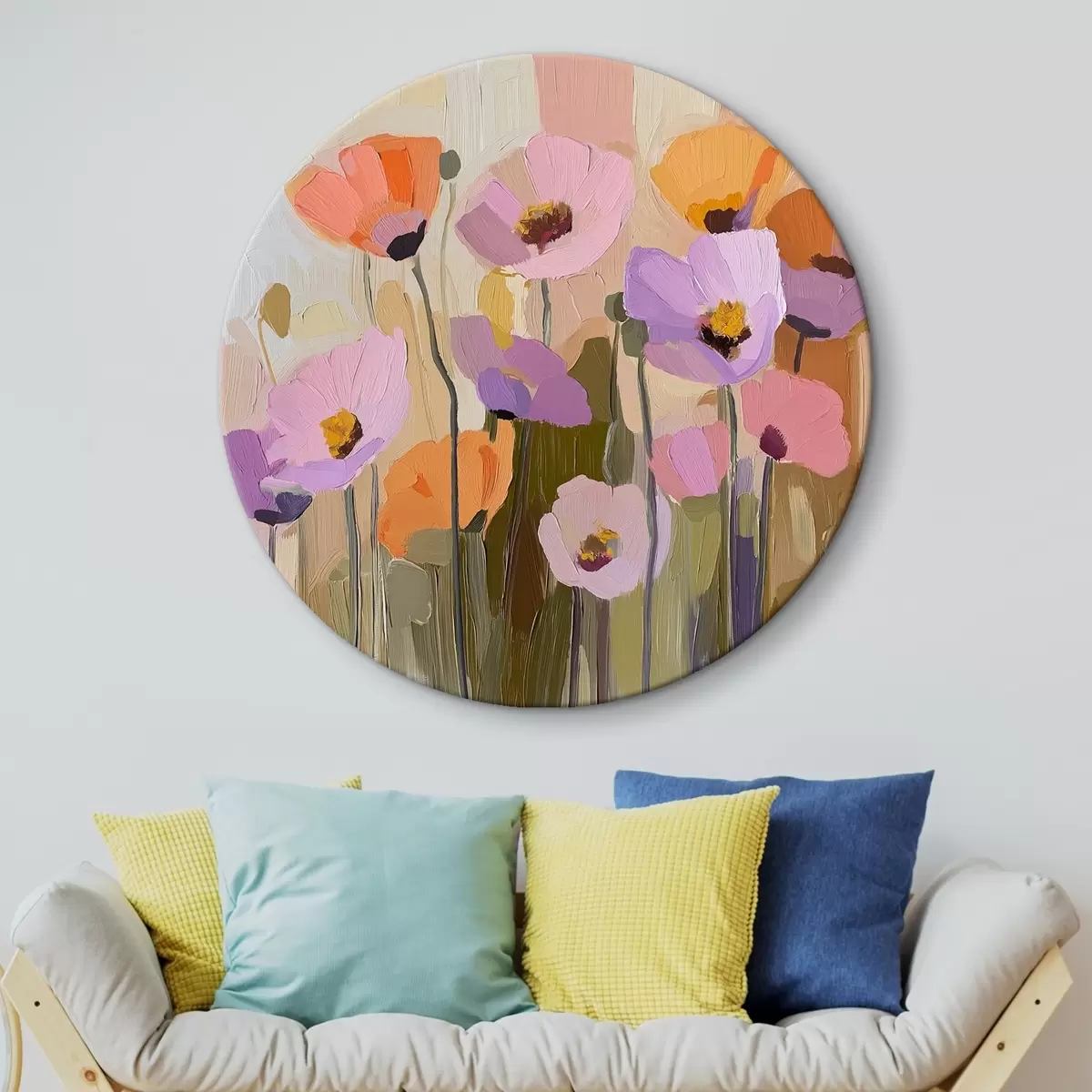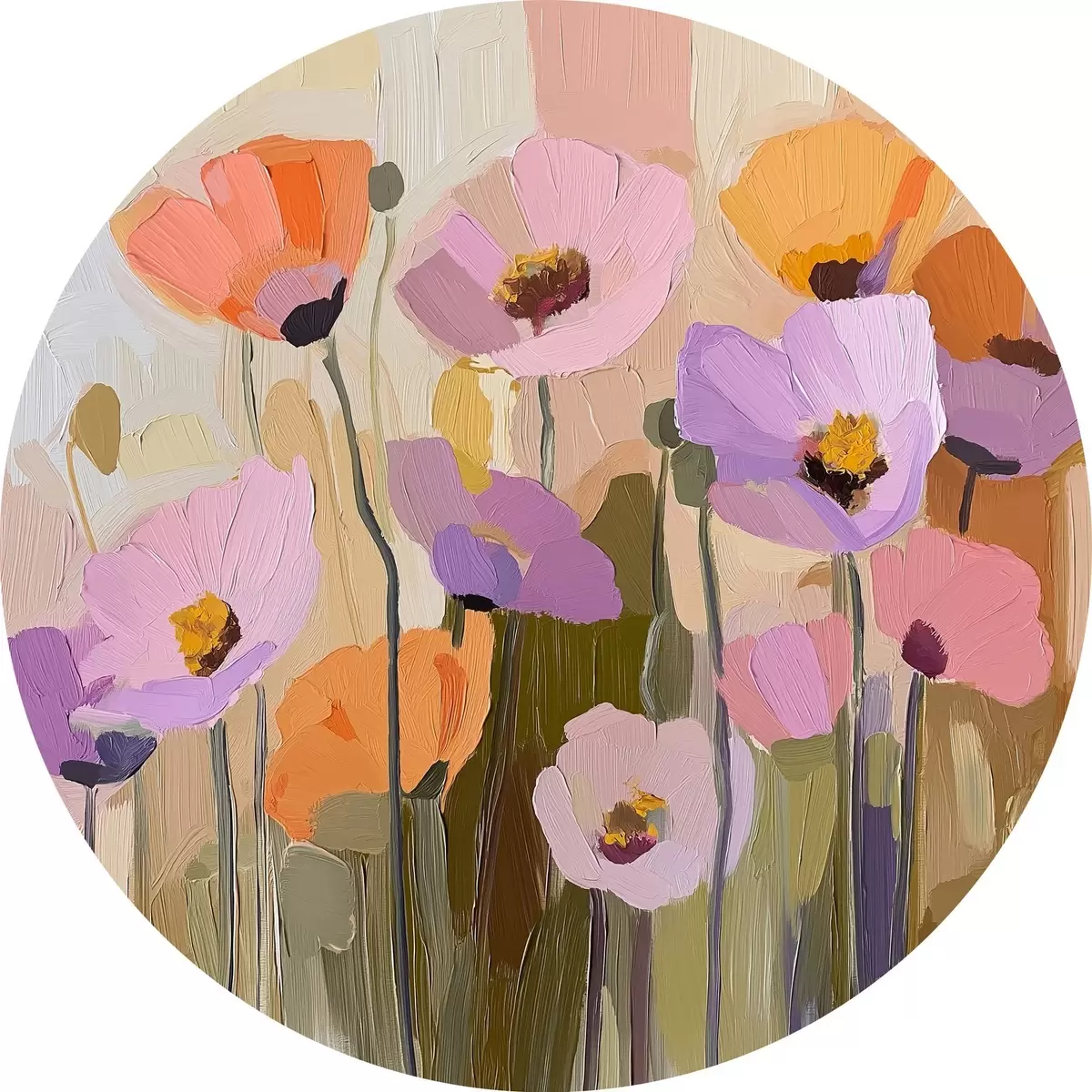 Cuadros redondos Una pintura acrílica que representa amapolas otoñales r41158