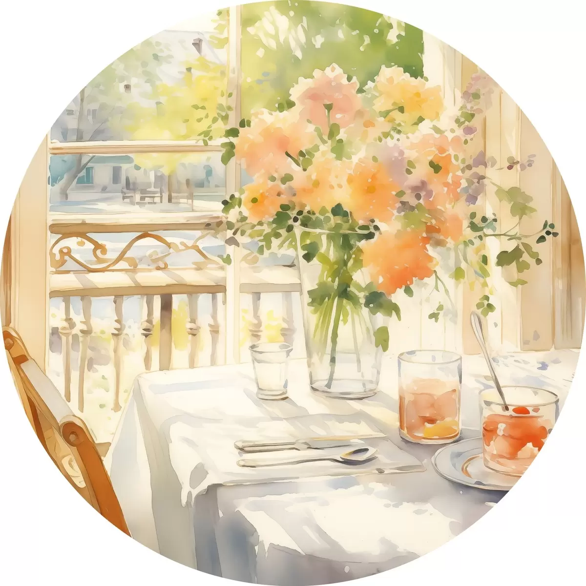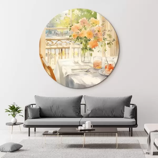 Cuadros redondos Cena romántica, acuarela, estilo boho, flores, naturaleza r41165
