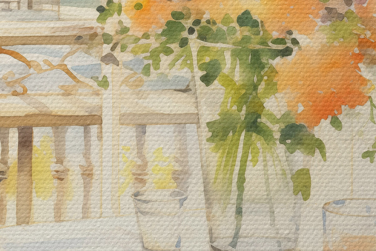 Foto Cena romántica, acuarela, estilo boho, flores, naturaleza Nr r41165