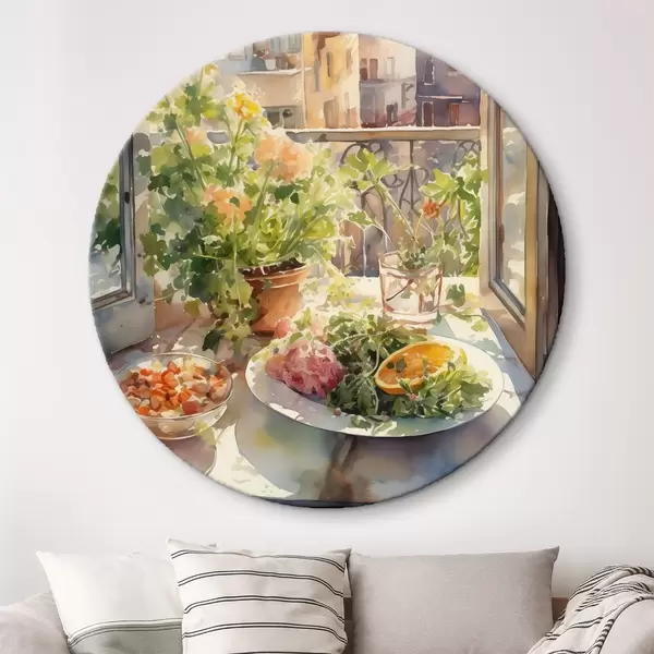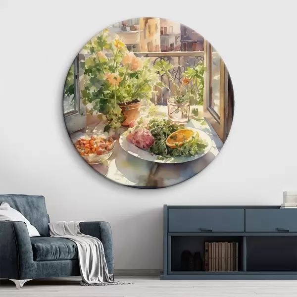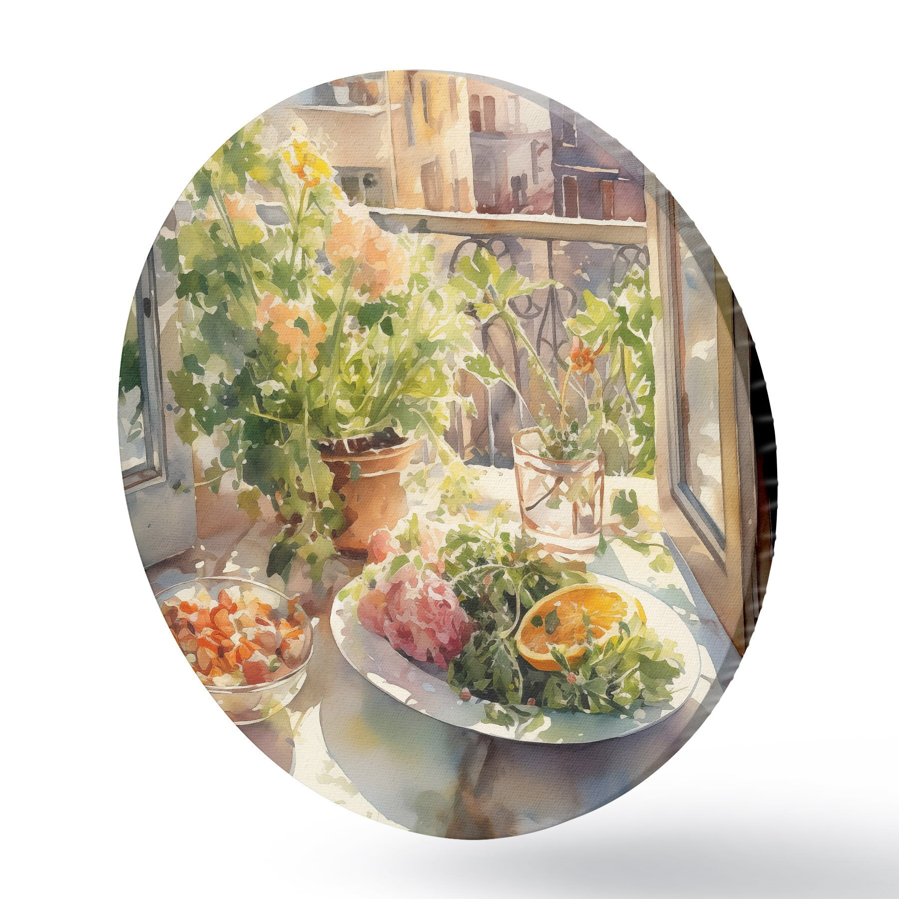 Cuadros redondos Cena de acuarela, vista de la ciudad, flores, naturaleza, ensalada verde r41166